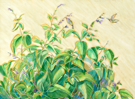 Step into the vibrant beauty of midsummer with Blue Sage & Hummingbirds, a fine art...