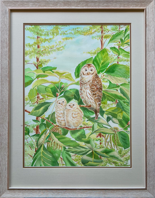 "Barred Owl and Owlets", Original Watercolor Painting, *price available upon request*