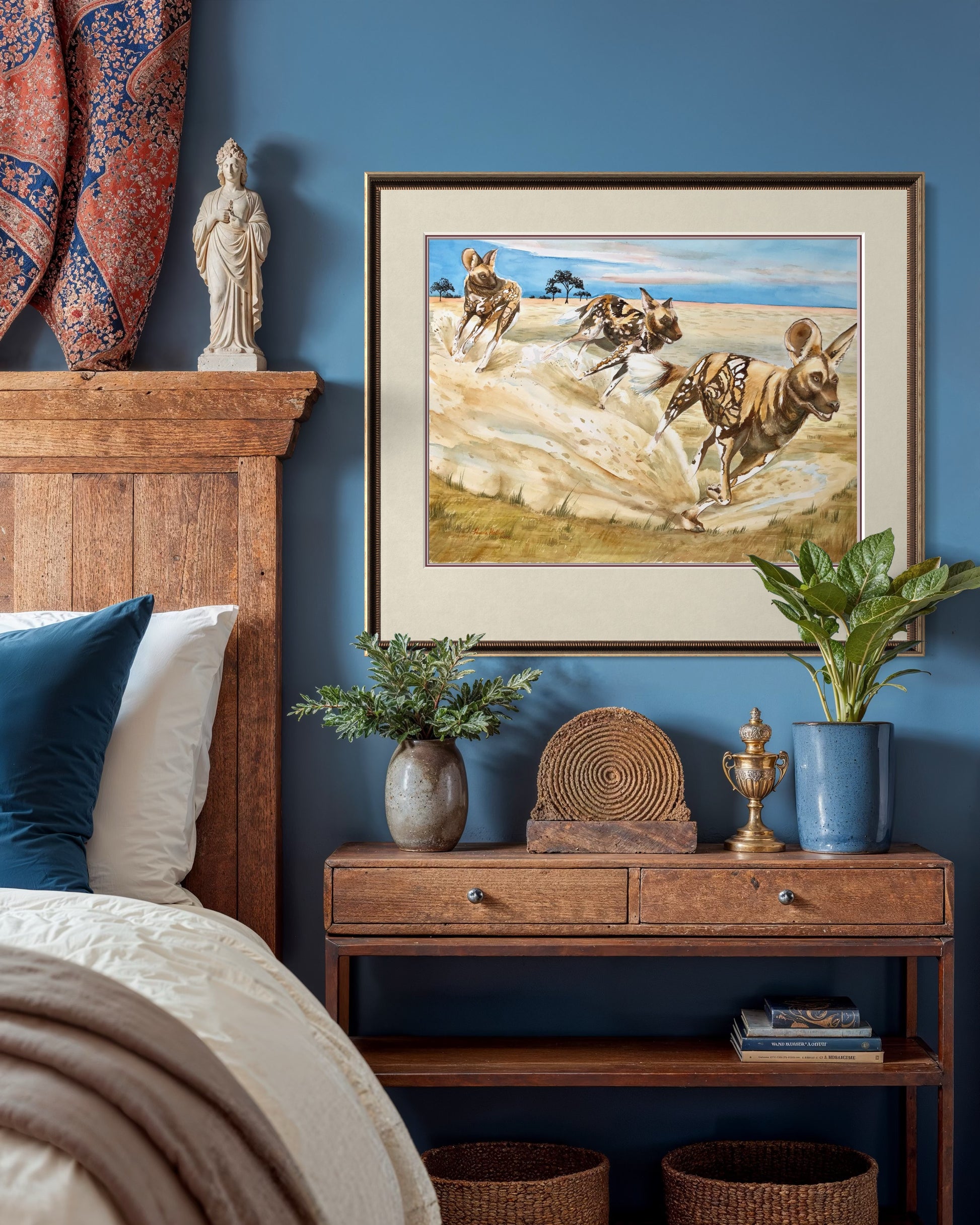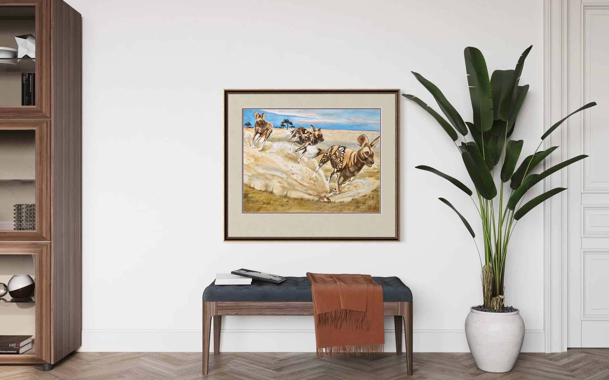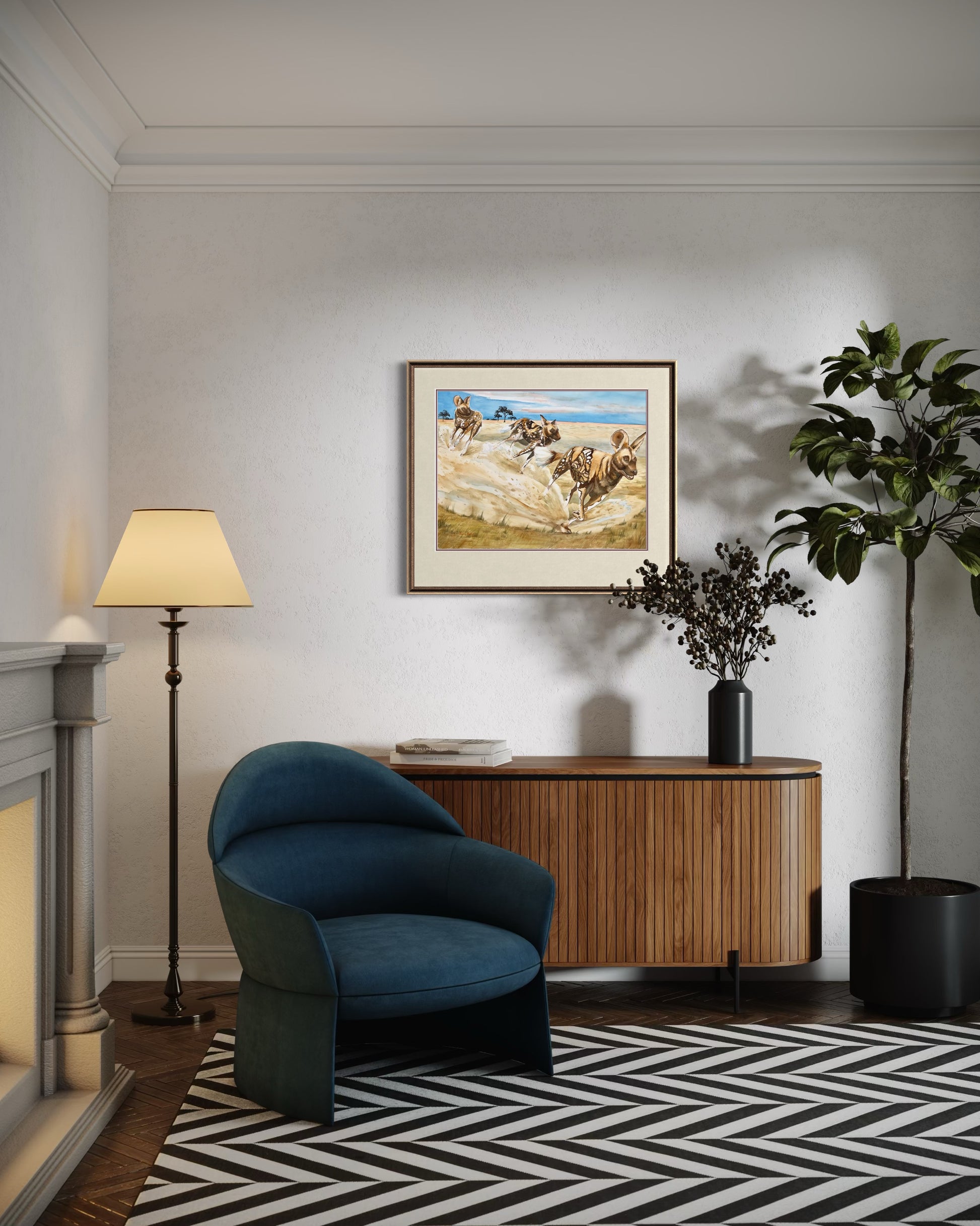 Dynamic and bold, African Painted Dogs celebrates the spirit of one of Africa’s most fascinating animals. Known for their striking calico coats of sable, cocoa, sienna, black, and white, these wild dogs are a feast for the eyes.