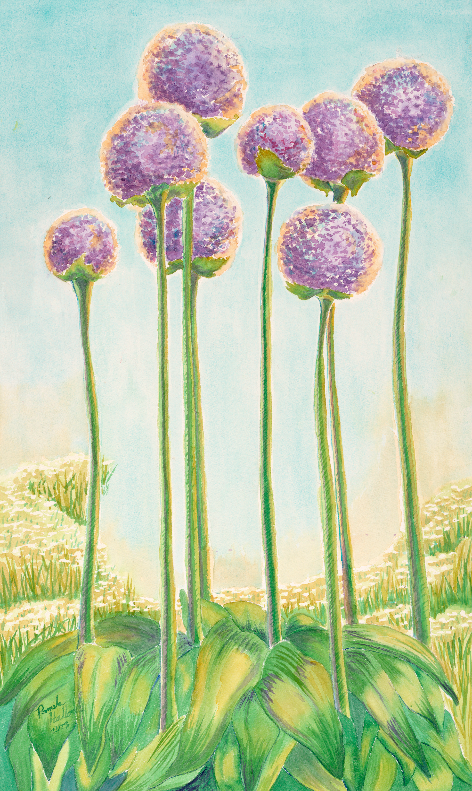"Signs of Spring", Allium Blooms – Floral Watercolor Print | Fine Art by Pamela Hallock