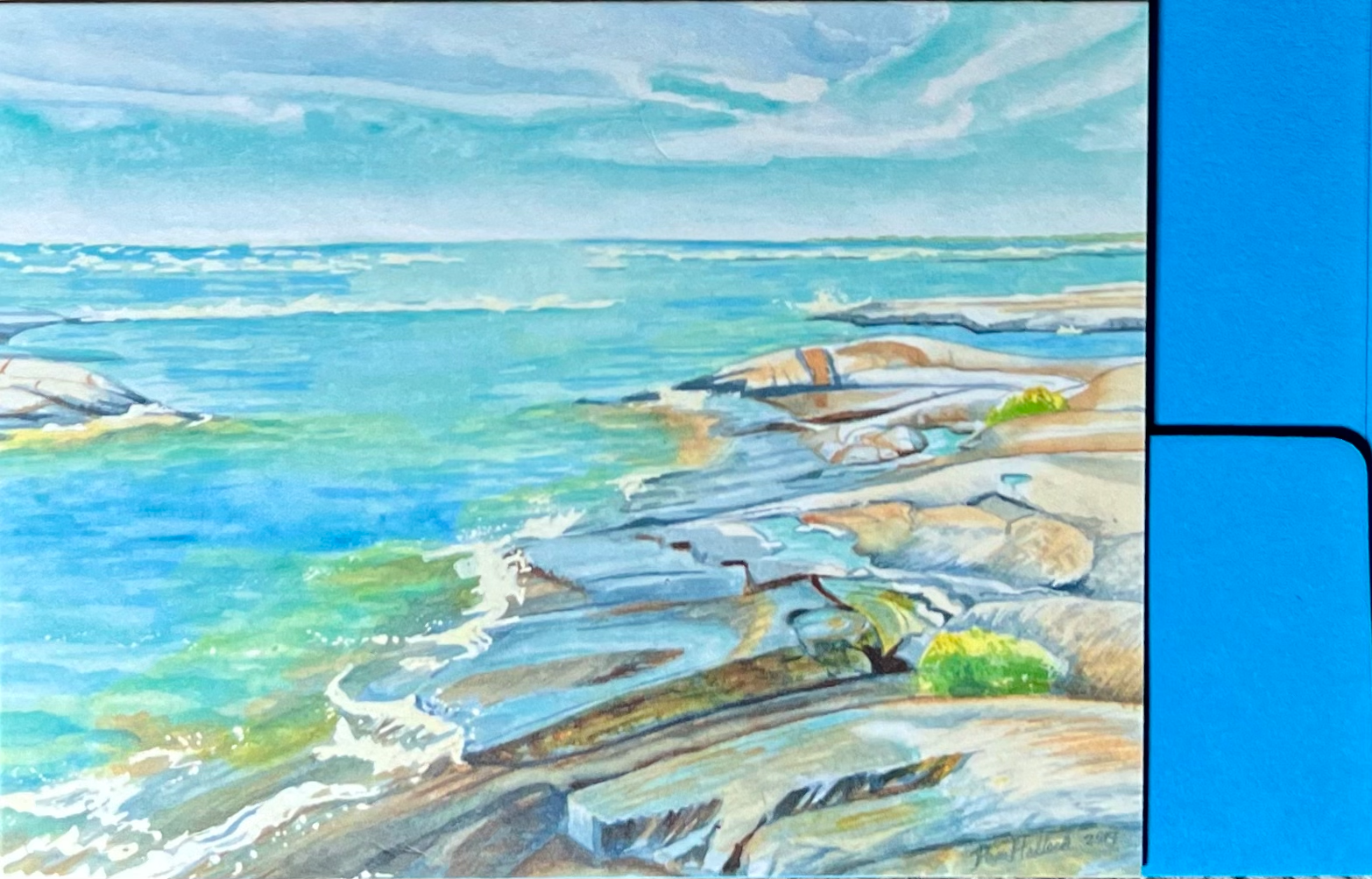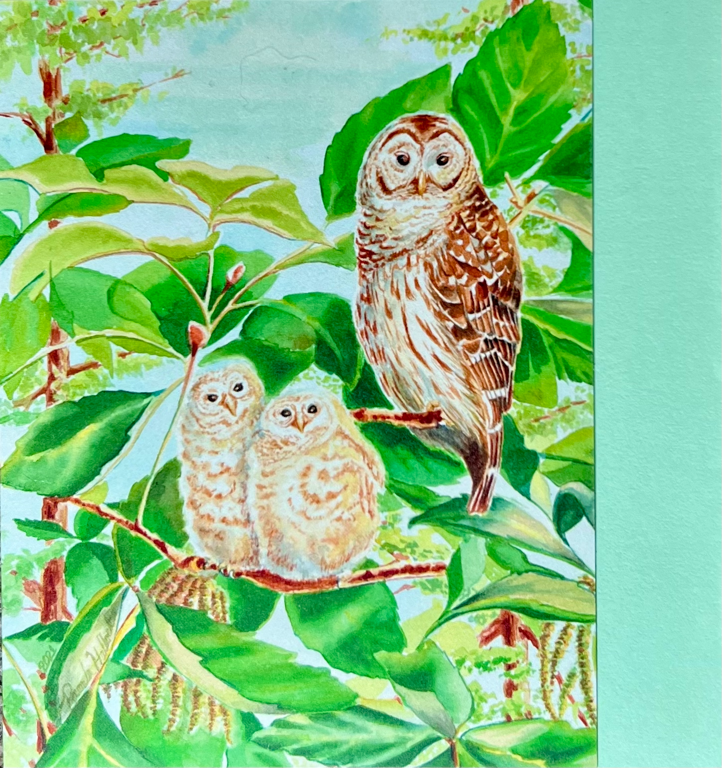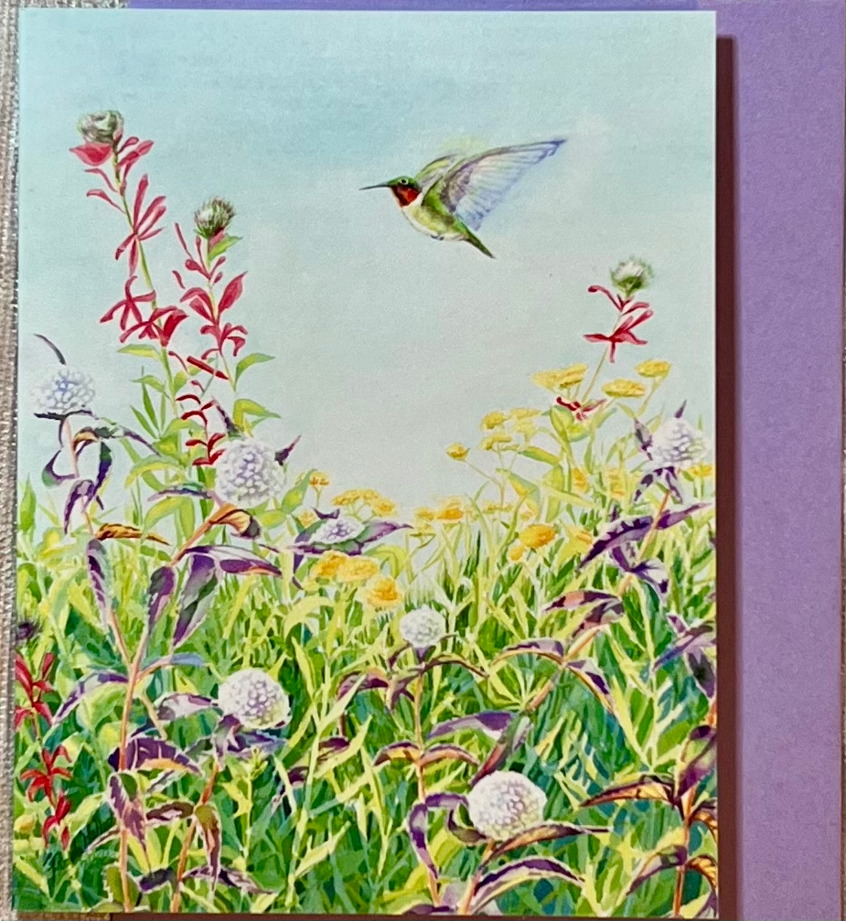 Celebrate wildlife in watercolor by artist Pamela Hallock with this delightful set of 8 blank artist note cards from the North Woods Collection. Each card showcases a captivating watercolor design, featuring favorites such as the majestic Barred Owl with its owlets, the vibrant Ruby-throated Hummingbird, a serene view of Lake Huron, the regal Bull Moose, a charming Lighthouse at Sunset, a sweet Baby Loon, a tranquil Morning Paddle scene, and the picturesque Loveland Bike Trail.