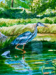 "Blue Heron", Frog Bay Matted & Framed Watercolor Print