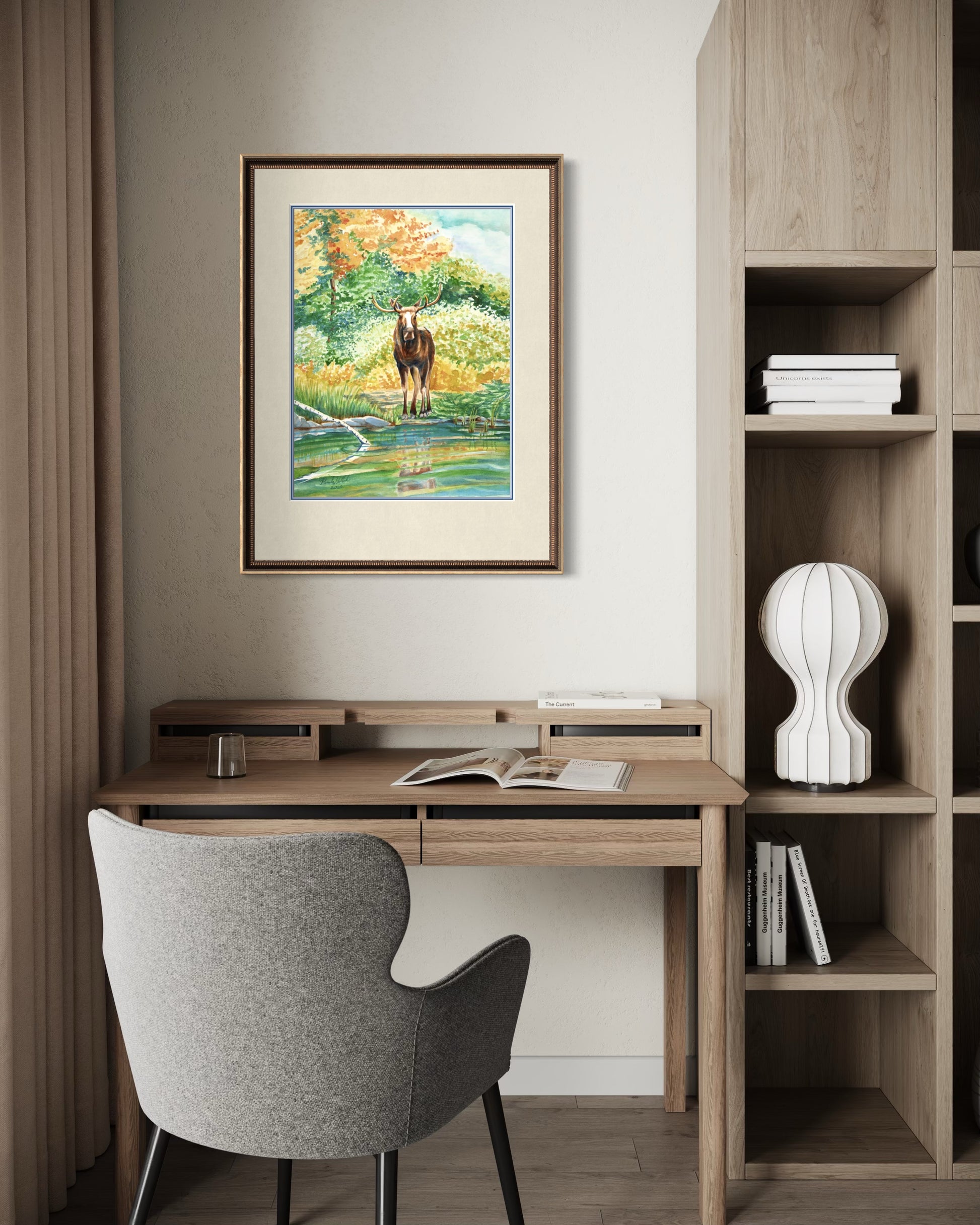 Perfect for collectors of wildlife watercolor prints, Canadian nature paintings, or autumn fine art décor, this piece is a stunning reminder of the awe-inspiring moments only nature can provide.