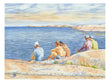 The bay’s still waters invite a refreshing swim, while the rocky island radiates warmth and serenity. This painting is a celebration of both the joy of companionship and the timeless beauty of nature—a reminder of perfect summer days spent outdoors with people we love.