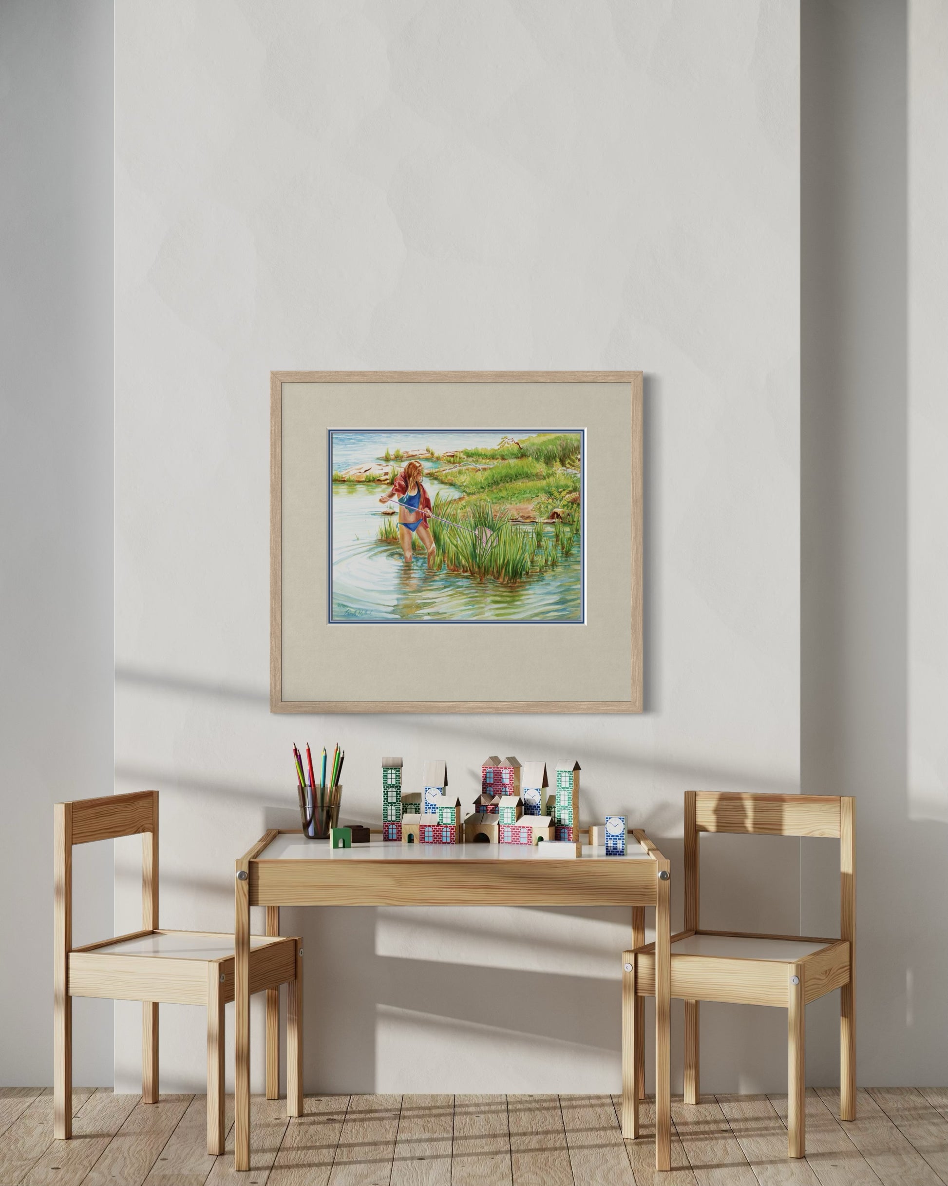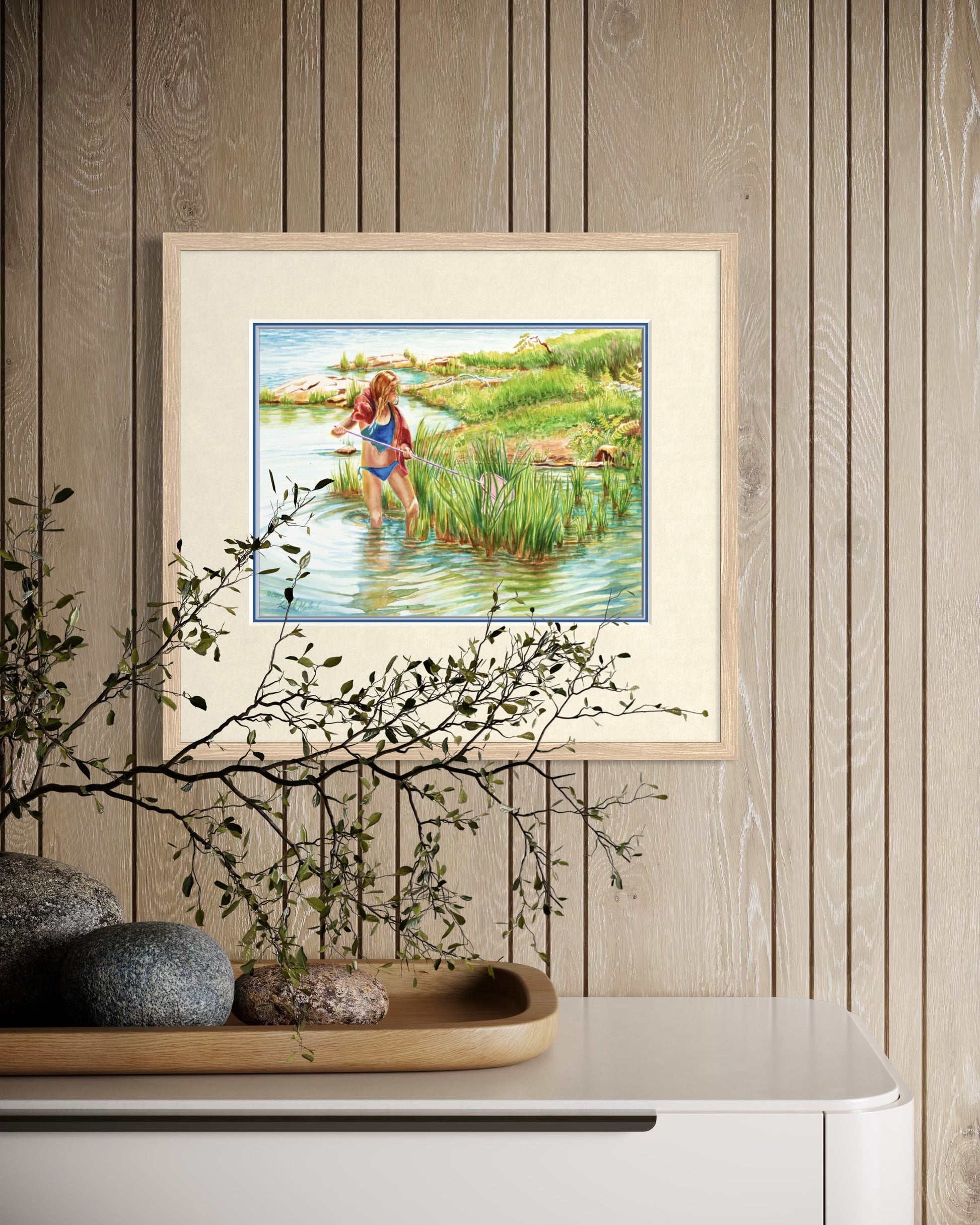 This artwork celebrates the pure wonder of childhood summers—where days are spent under the sun, wading in the shallows, and discovering nature’s small miracles. Perfect for collectors of Canadian landscape art, childhood nostalgia paintings, or Georgian Bay fine art prints, this piece brings the lighthearted spirit of summer into your home.