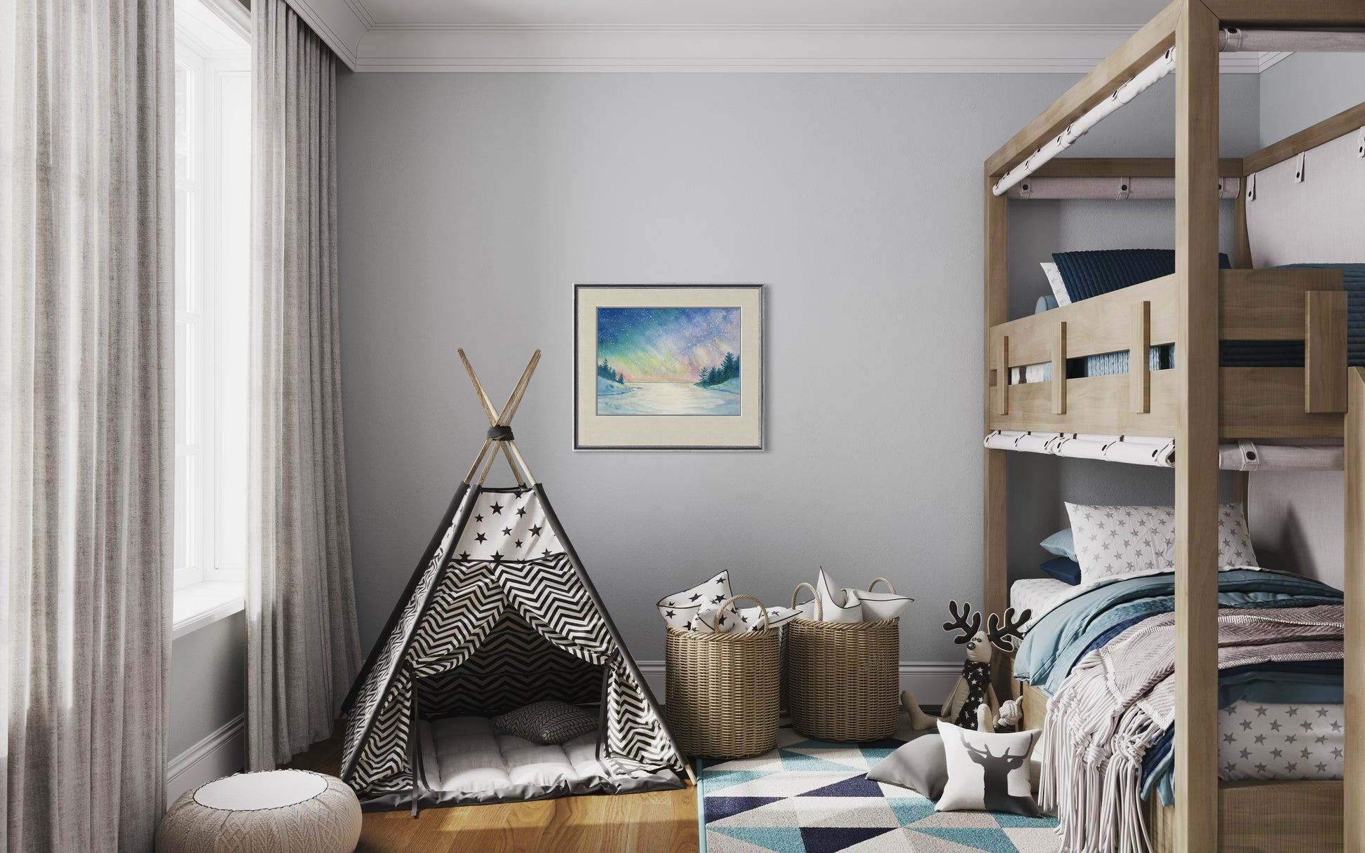 Atmospheric and luminous, Lake Huron Winter Sky captures the breathtaking beauty of a starlit night on the frozen bay. Above the icy channel, the northern lights dance like a celestial ballet, blending brilliant greens and violets across the sky. The Milky Way stretches overhead, guiding the eye into the mysteries of the universe.