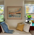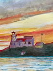 "Lighthouse for Sunset" was created using all archival materials and techniques, painted on 100% cotton paper using professional grade pigments. Framed and matted with acid-free materials. Museum grade, non-glare, 100% UV protection glass.