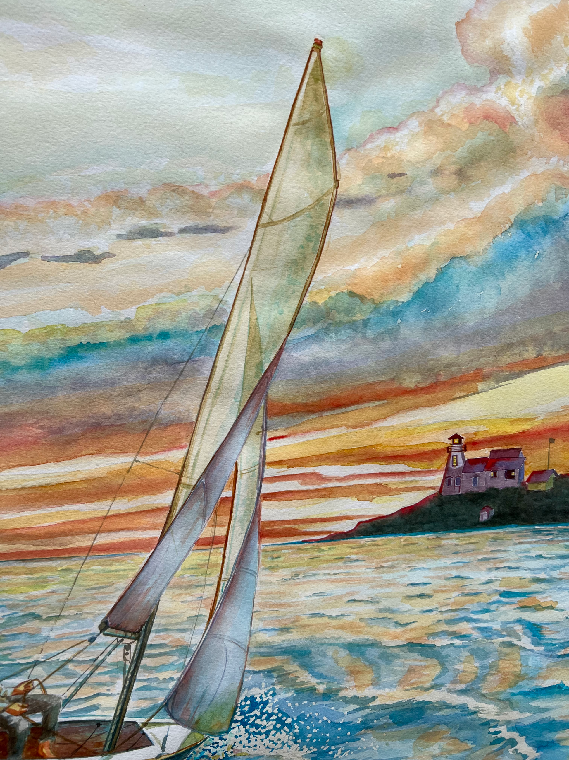 "Lighthouse for Sunset", Original Watercolor Painting, *price available upon request*
