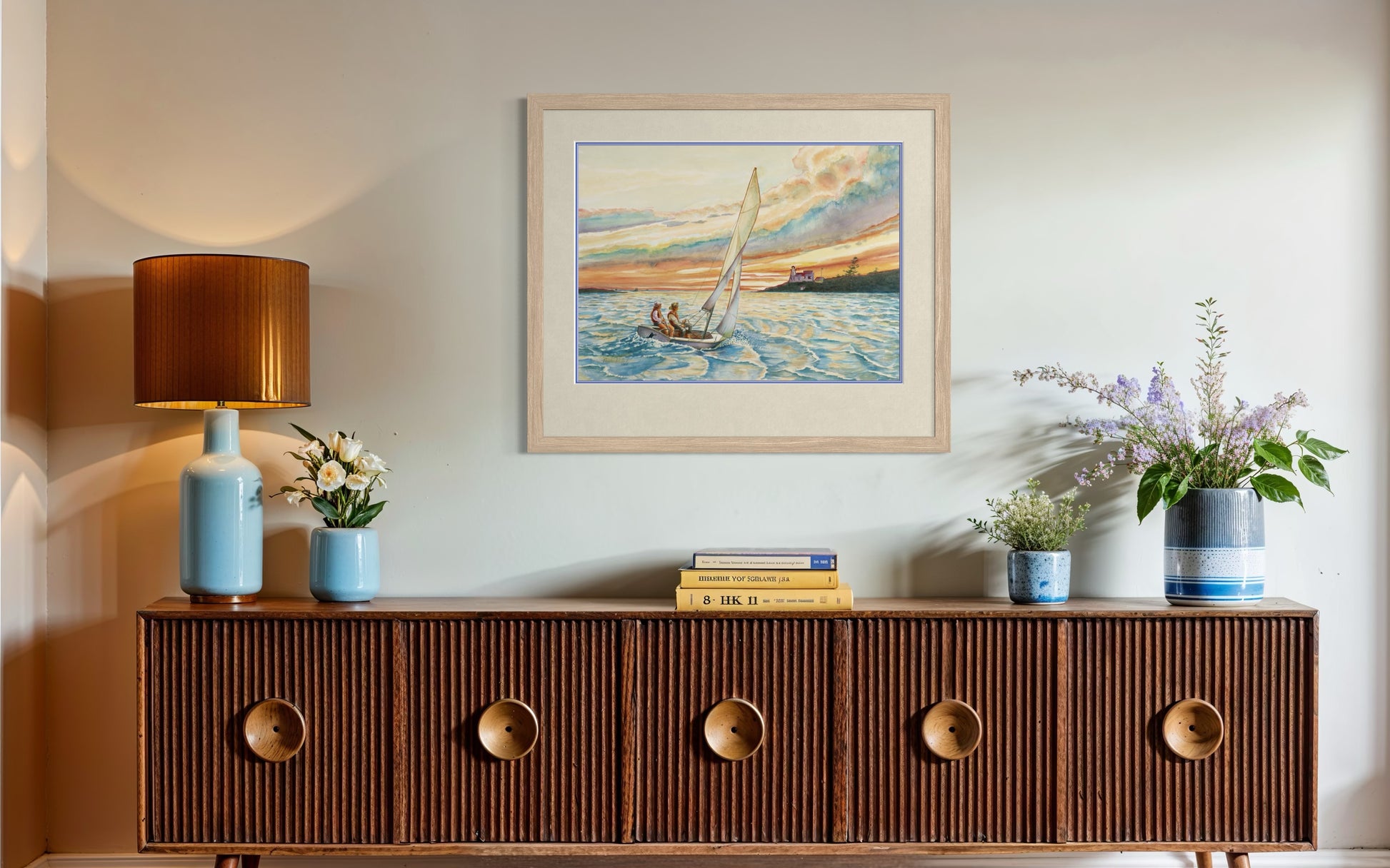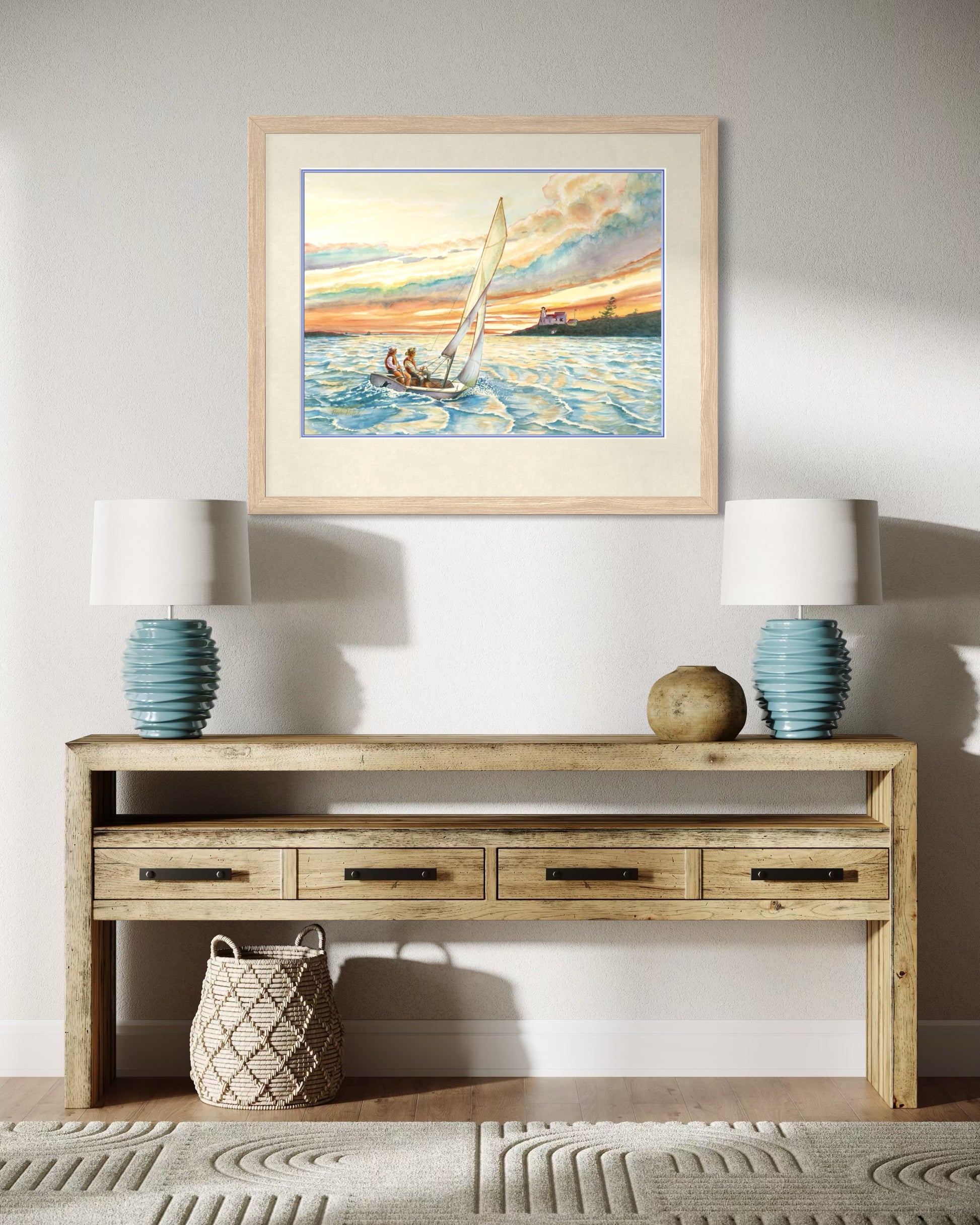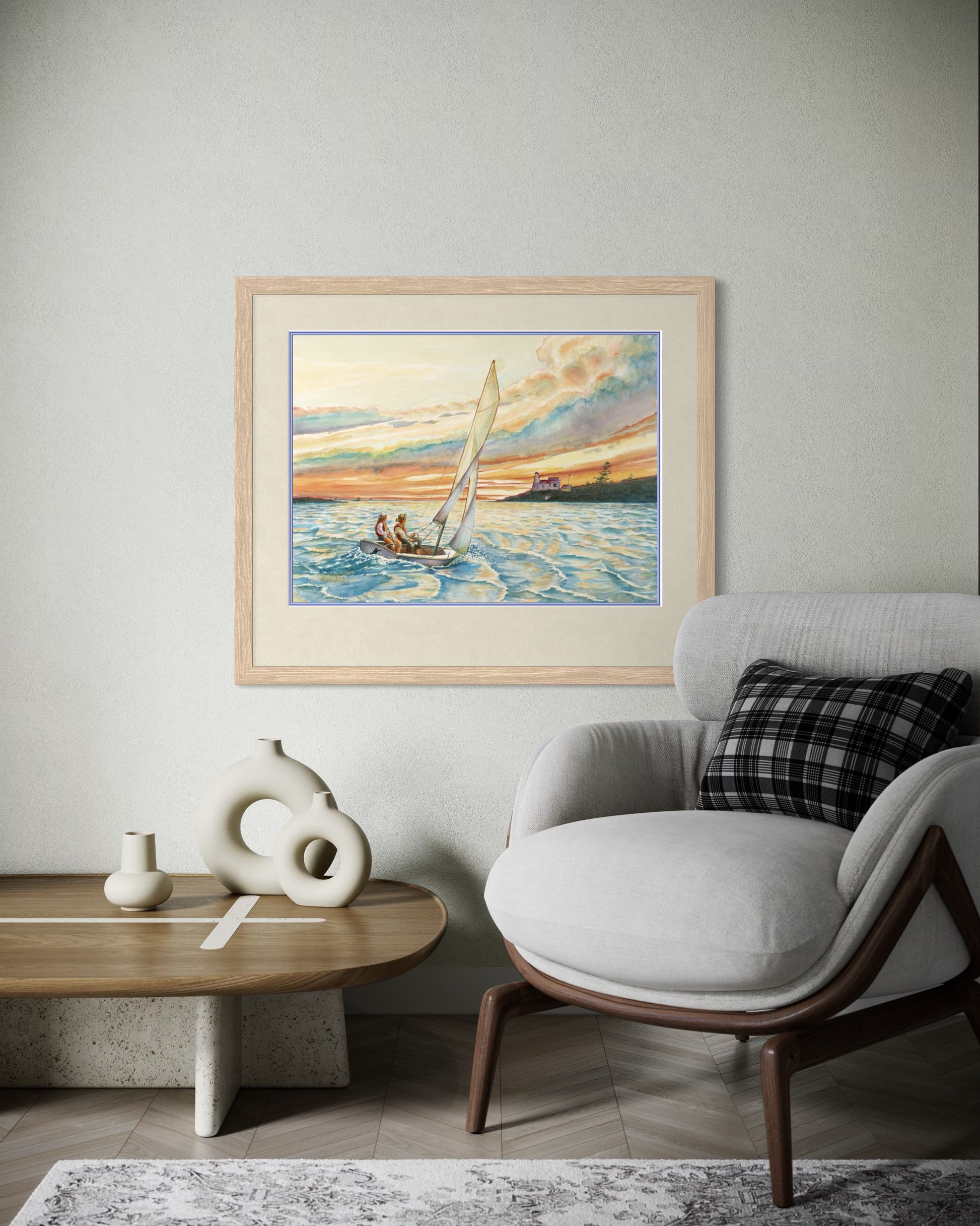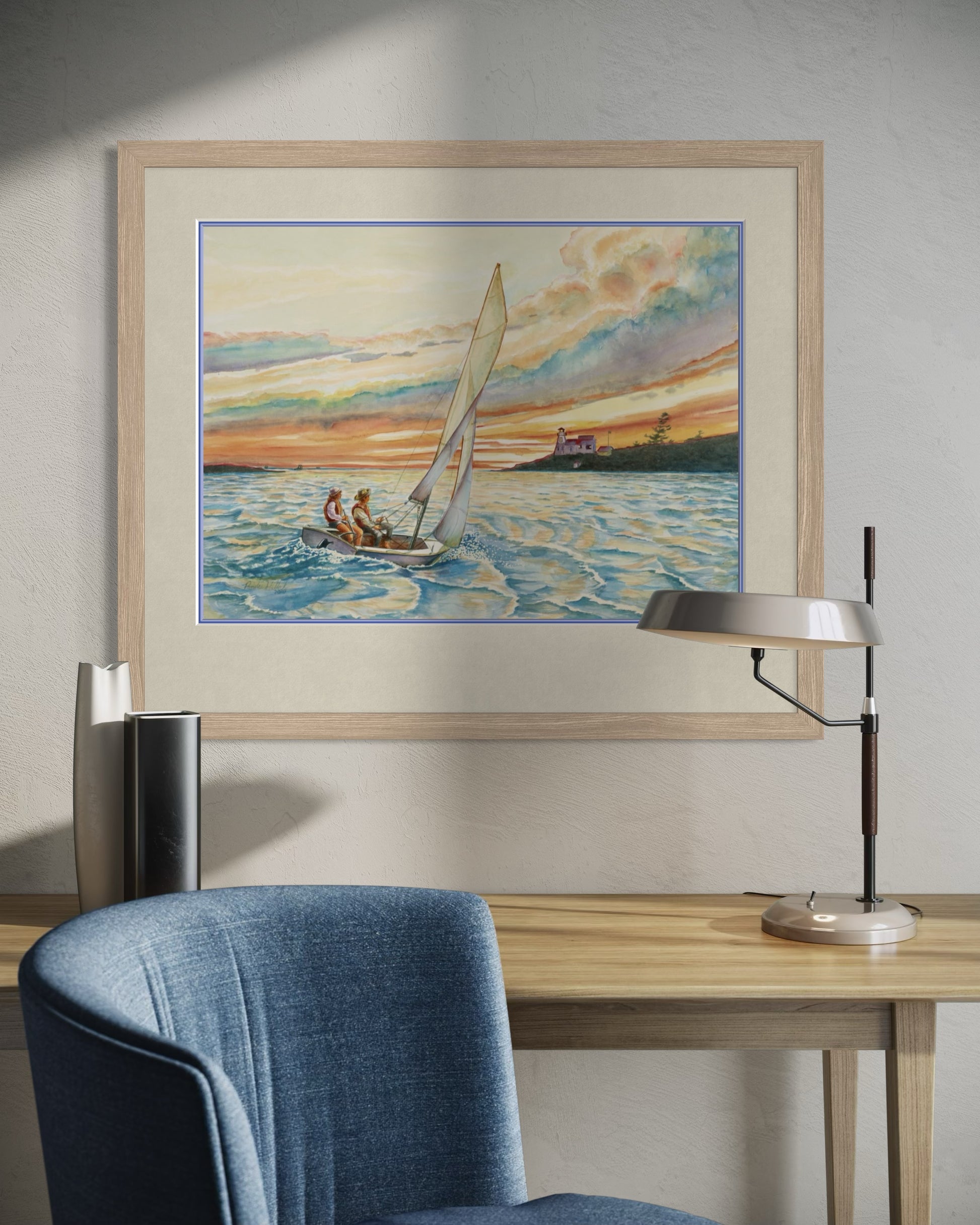"Lighthouse for Sunset", Watercolor Print | Sailing Fine Art