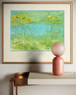 Serene and enchanting, Lilies in Frog Bay celebrates the quiet beauty of life beneath the water’s surface. A lush spread of vibrant lake lilies rises through the clear bay, creating a living tapestry of green and gold. Their delicate stems provide shelter for creatures of the lake—including a playful little turtle gliding peacefully under the canopy of leaves.