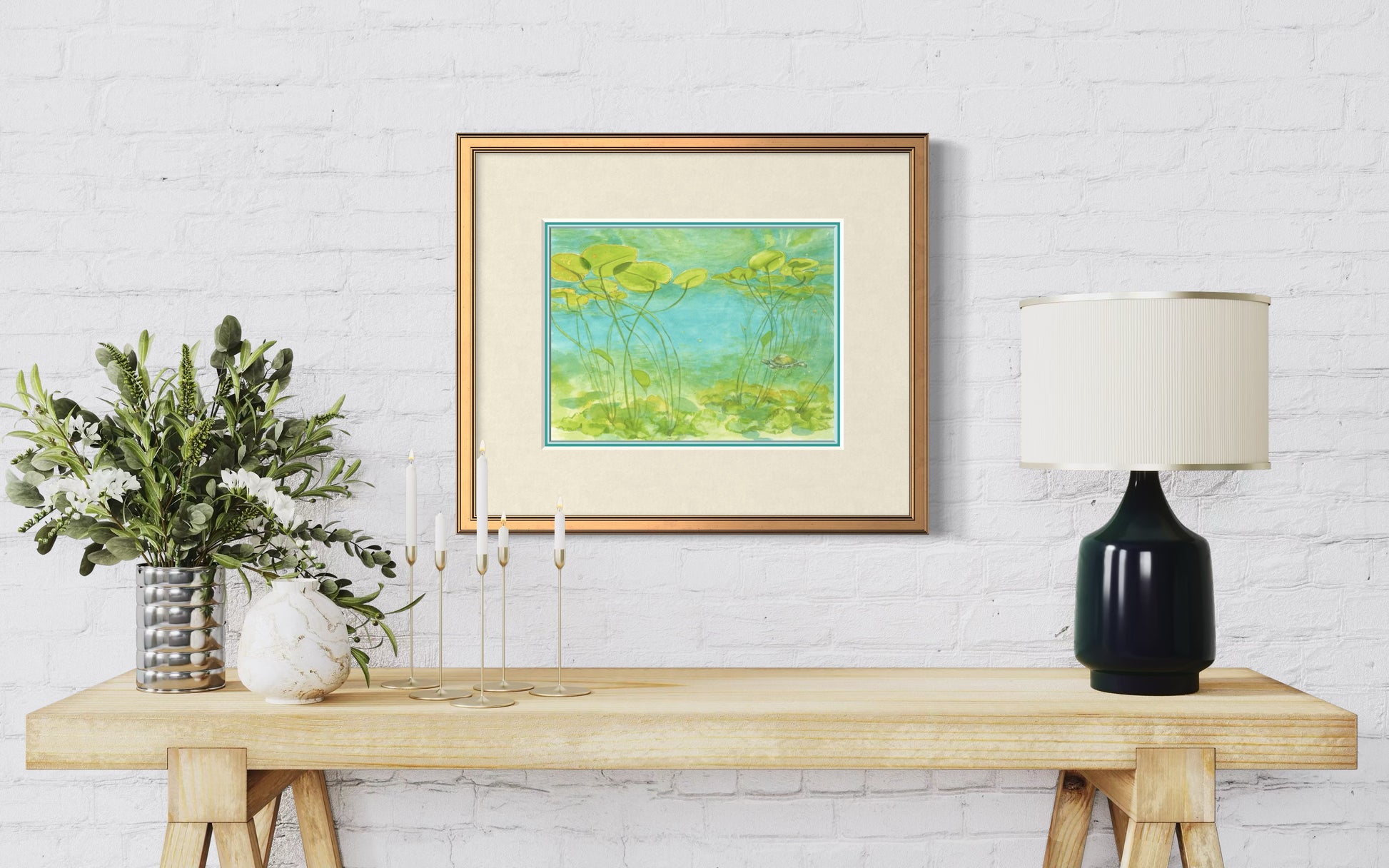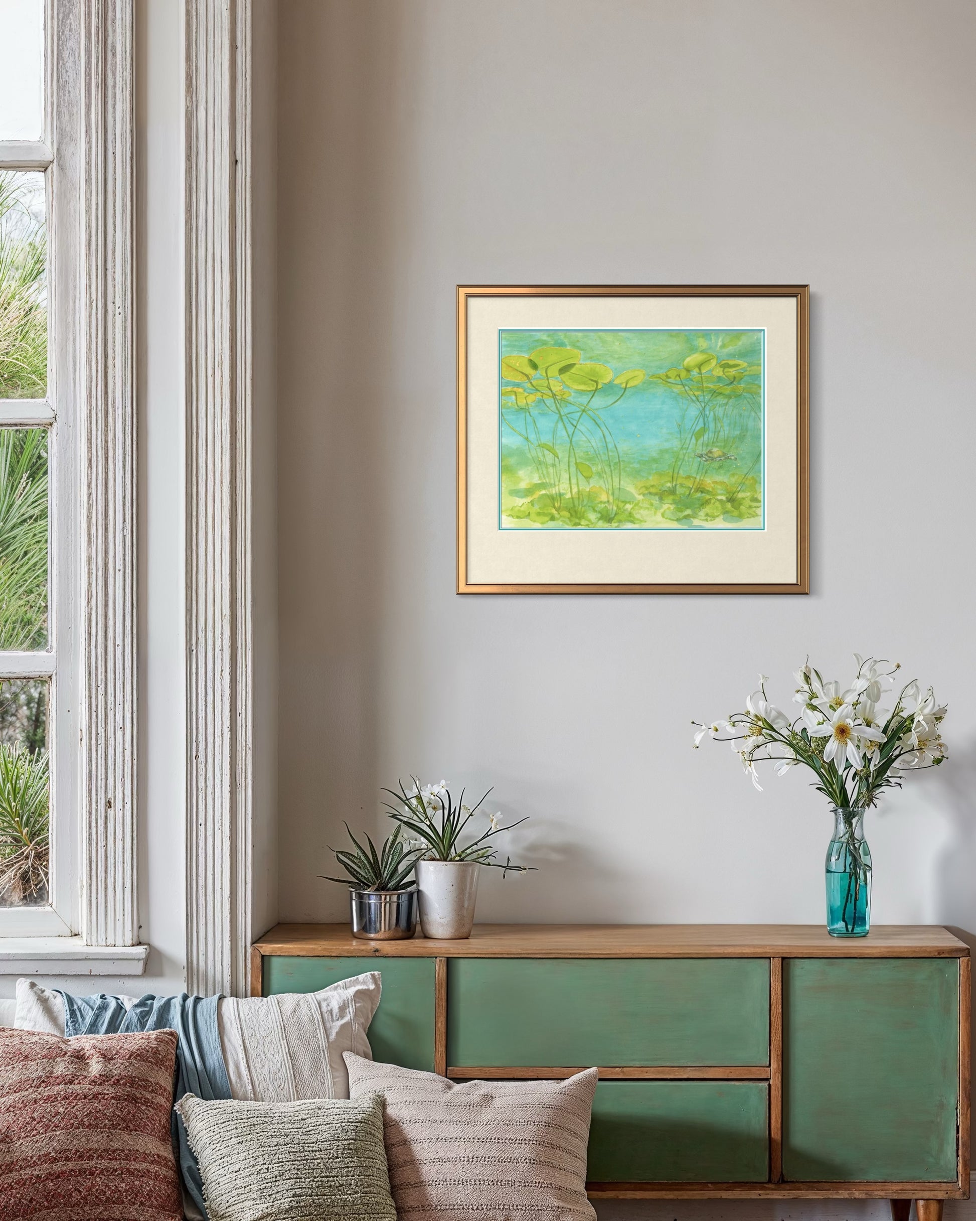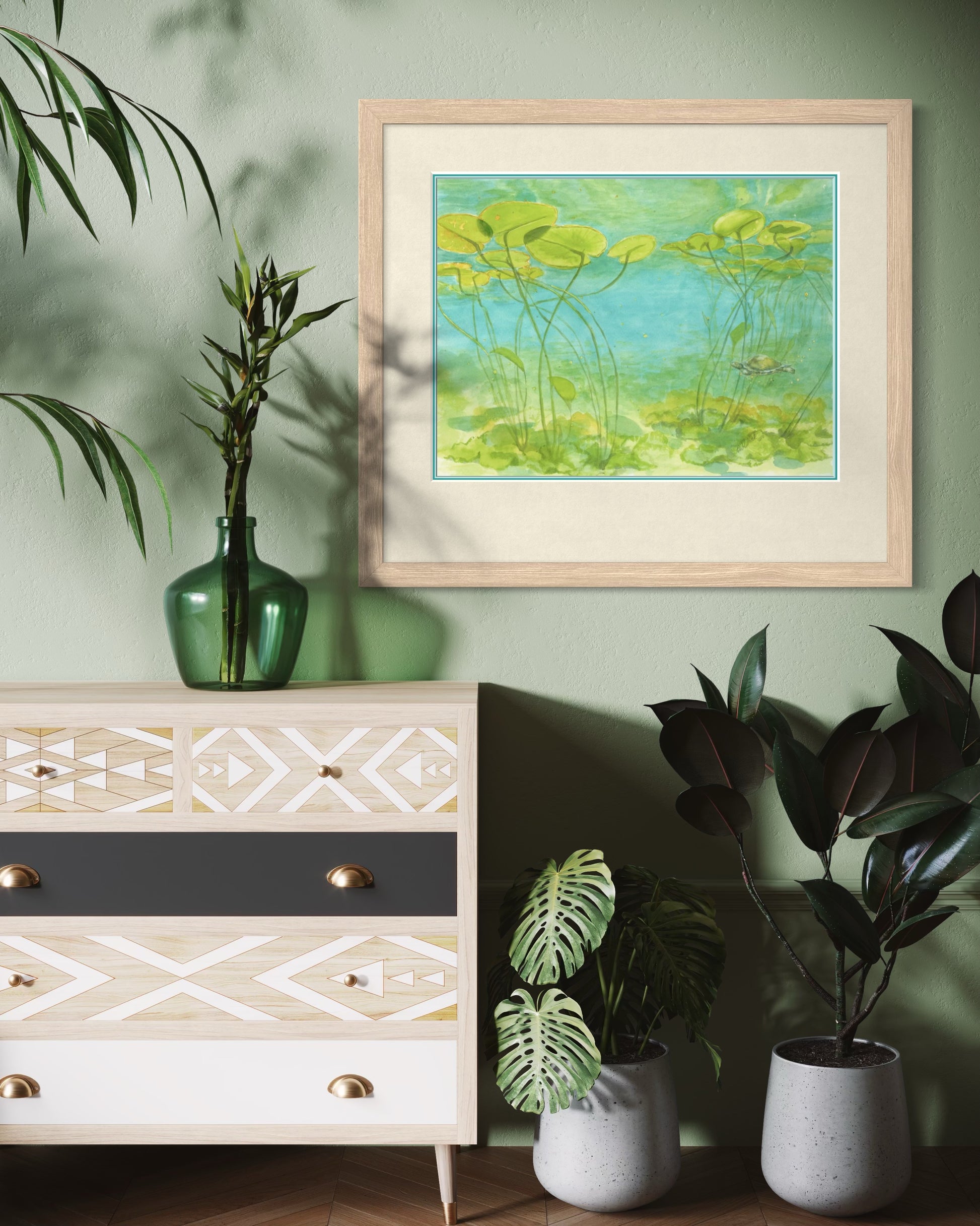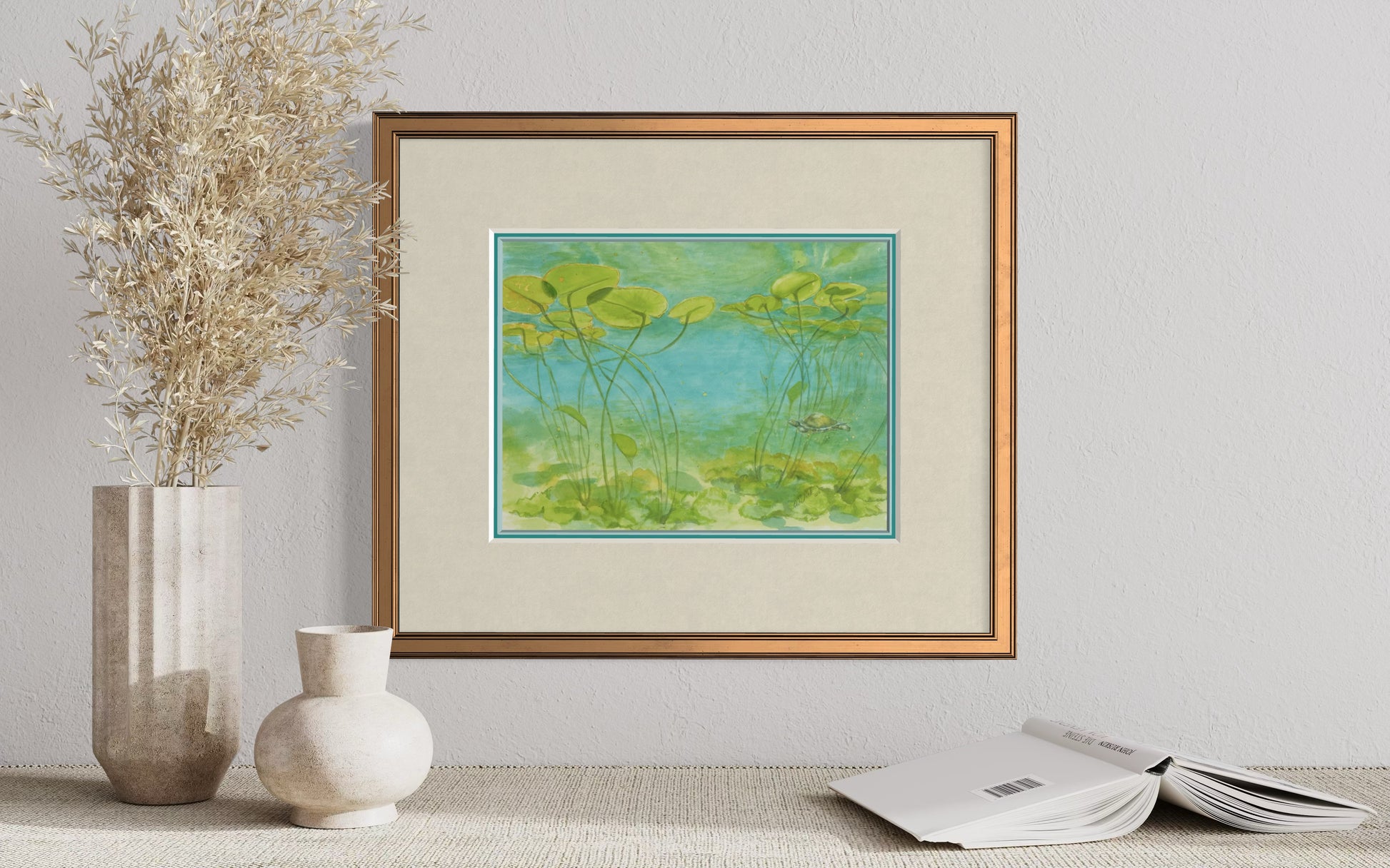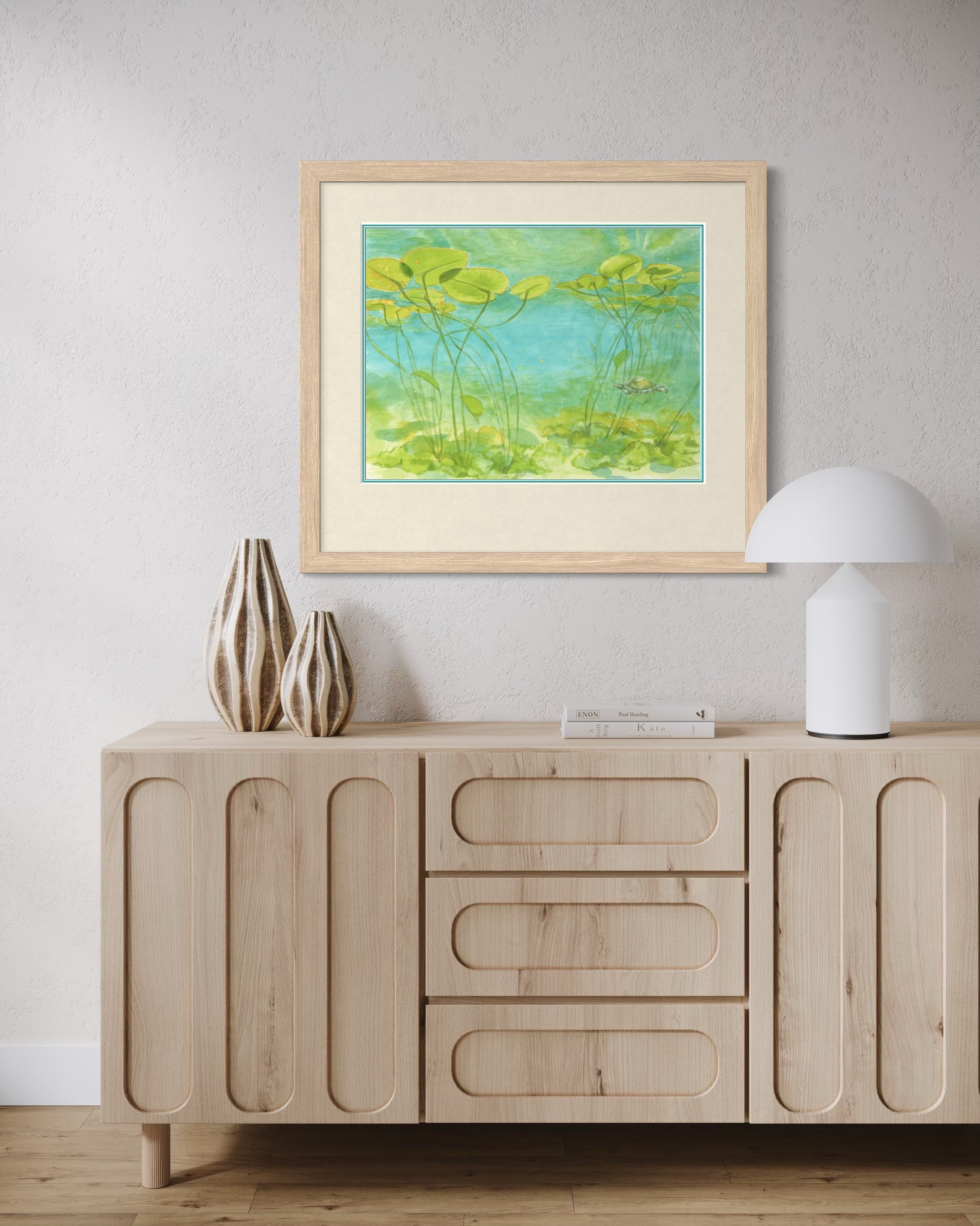The bright colors and calm setting make this piece a gentle reminder of the hidden wonders of nature. Perfect for collectors of botanical watercolor prints, turtle fine art, or Georgian Bay-inspired artwork, this print brings a touch of tranquility and natural beauty to any space.