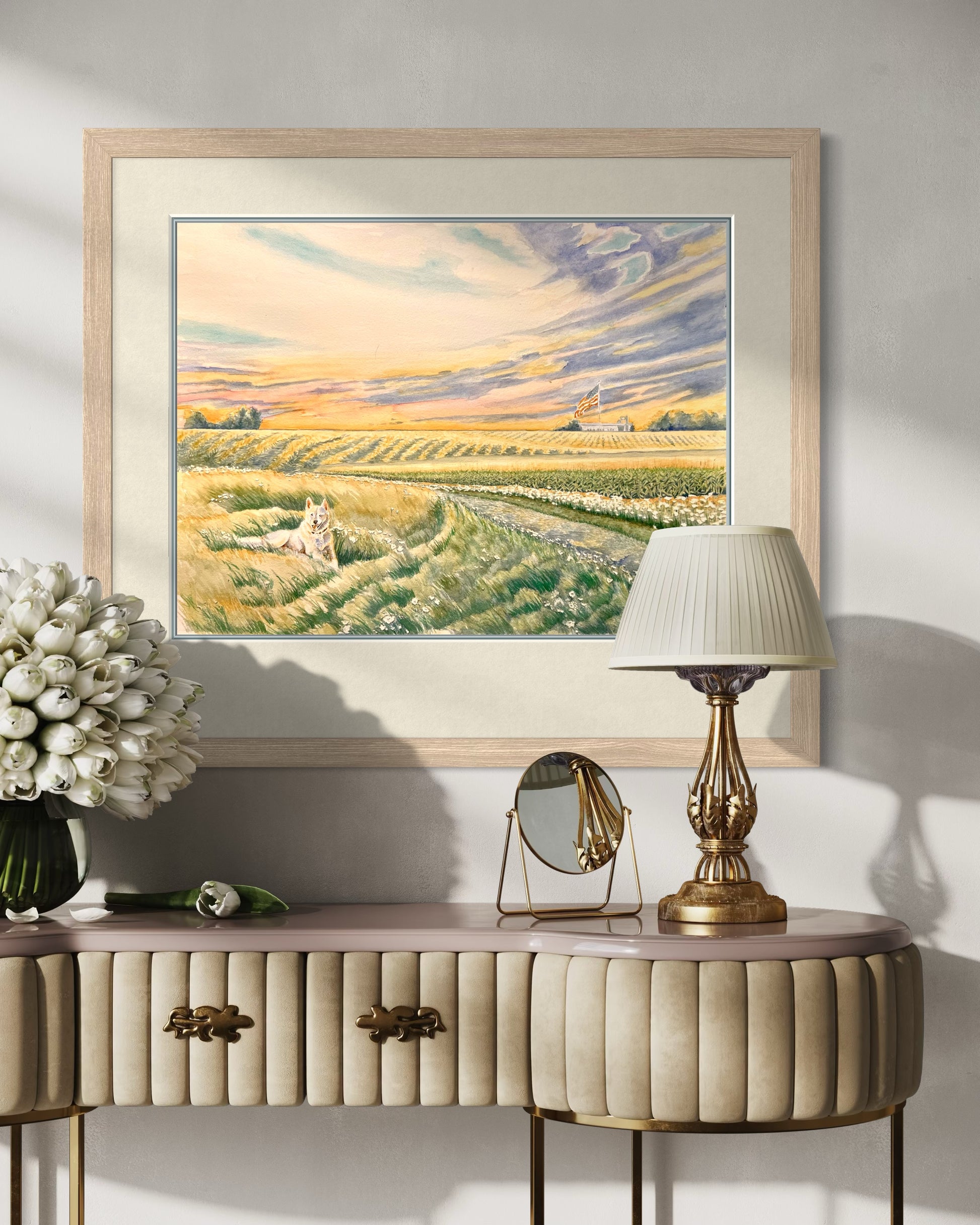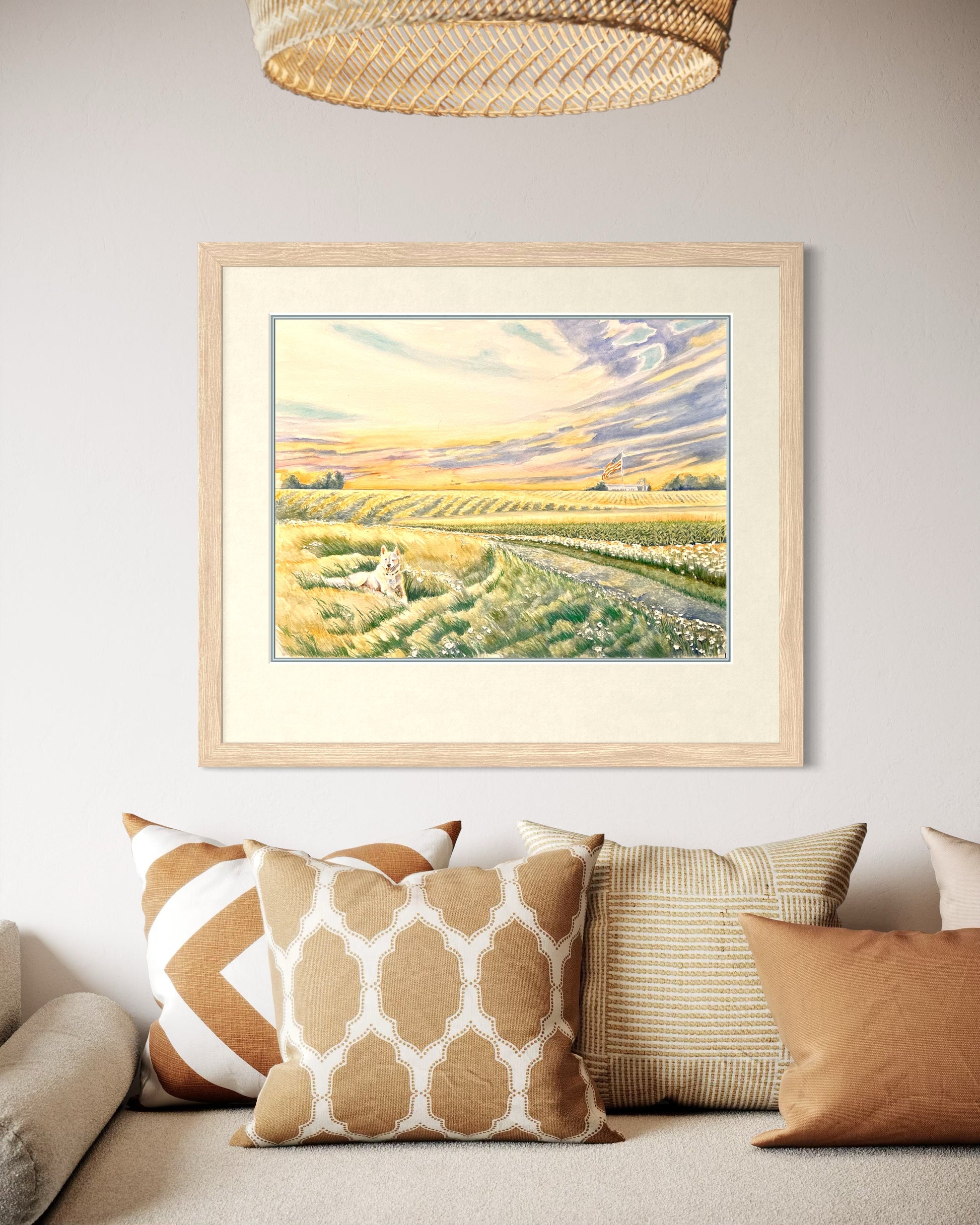 "Midwest Cornfields" Watercolor Print | Husky & Sunrise Art