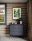 Fresh and invigorating, Morning Paddle captures the thrill and serenity of starting the day on the calm waters of Georgian Bay, Lake Huron. Two friends set off in a bright red canoe, eager to explore the sparkling aqua waters beneath the rising sun. The white morning light illuminates lush pine and birch trees along the shoreline, while reeds sway gently in the breeze.