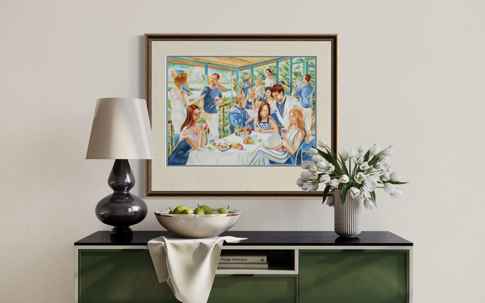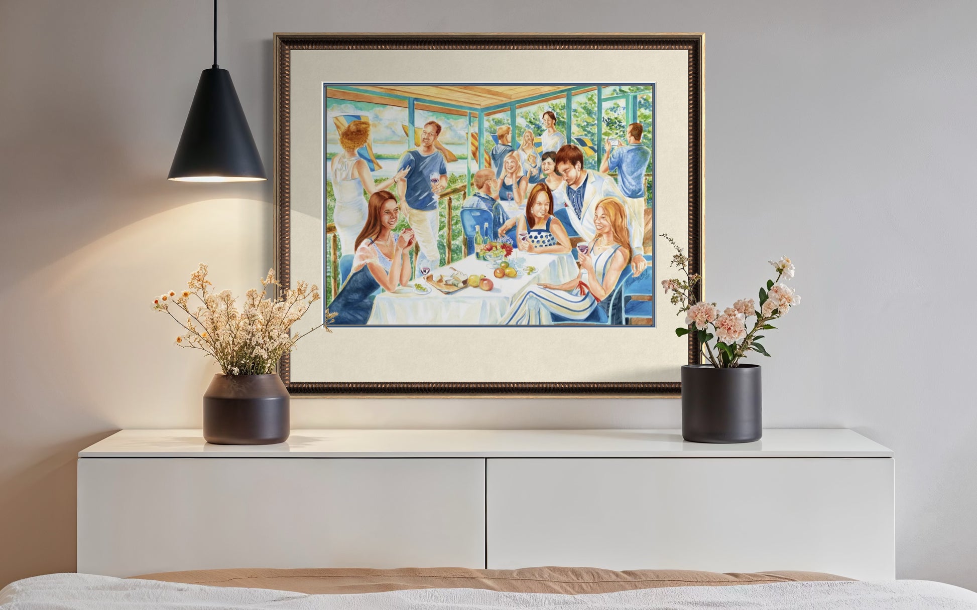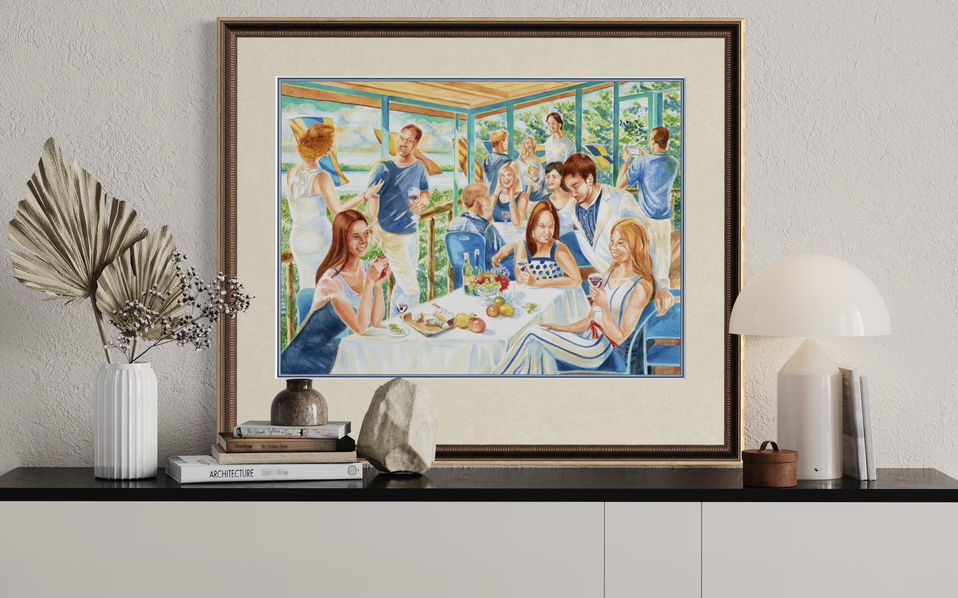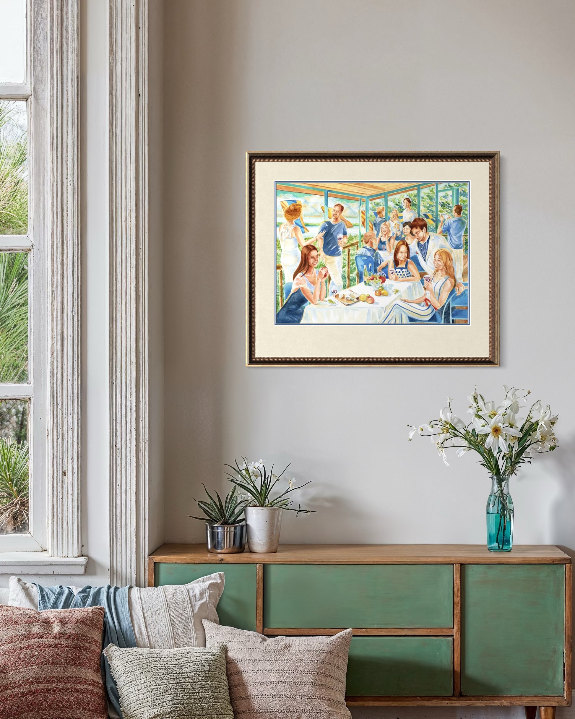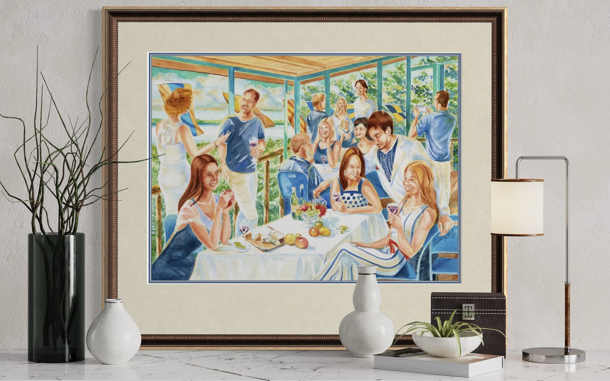 This artwork is ideal for collectors of Georgian Bay fine art, regatta watercolor prints, or dining and celebration paintings—a lively piece that celebrates both nature and fellowship.