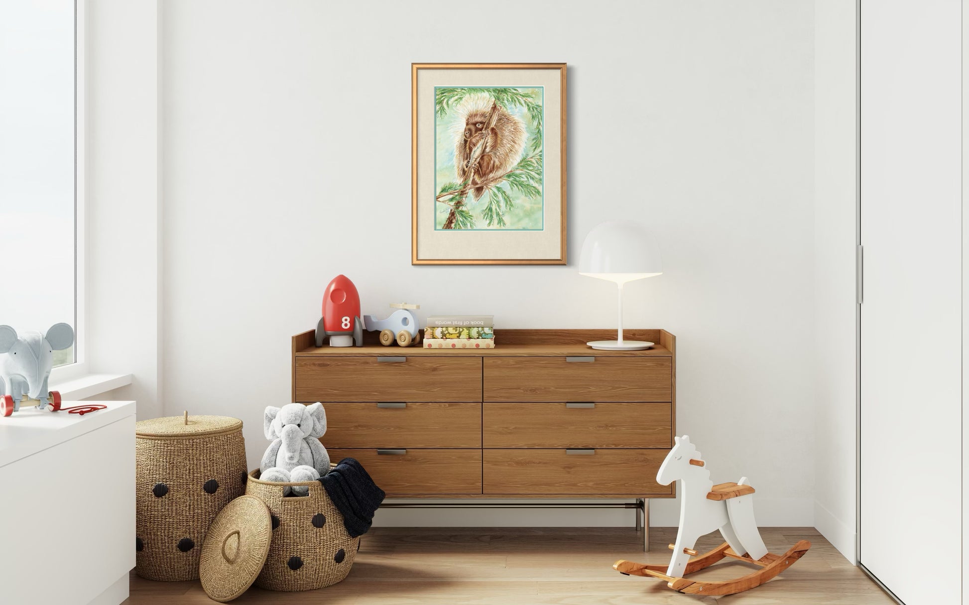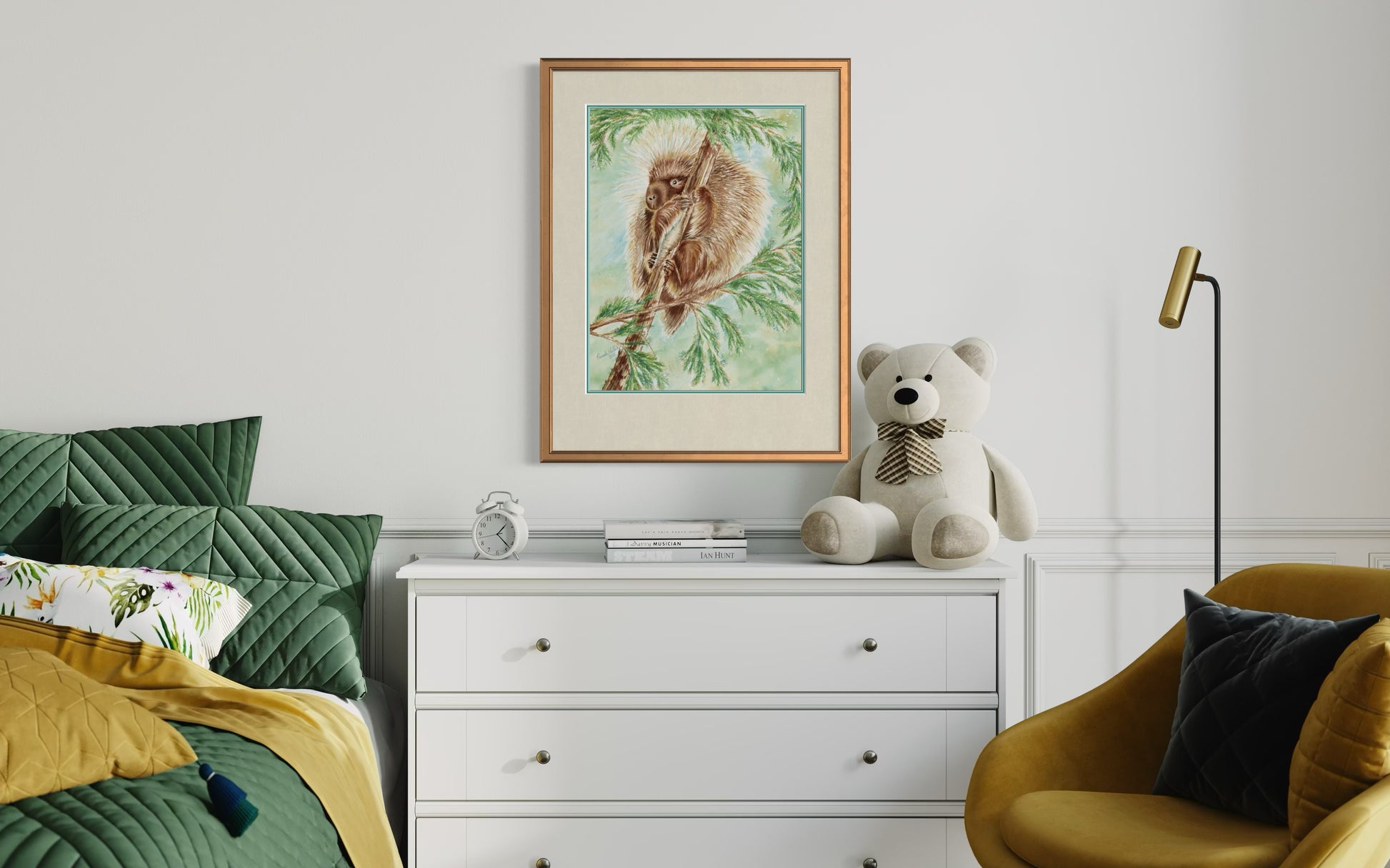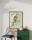 The painting radiates warmth and serenity, as if you’ve been invited to share a peaceful morning feast with this endearing creature. Perfect for collectors of woodland animal art, wildlife watercolor prints, or nature-inspired décor, this artwork celebrates the charm of everyday moments in the natural world.