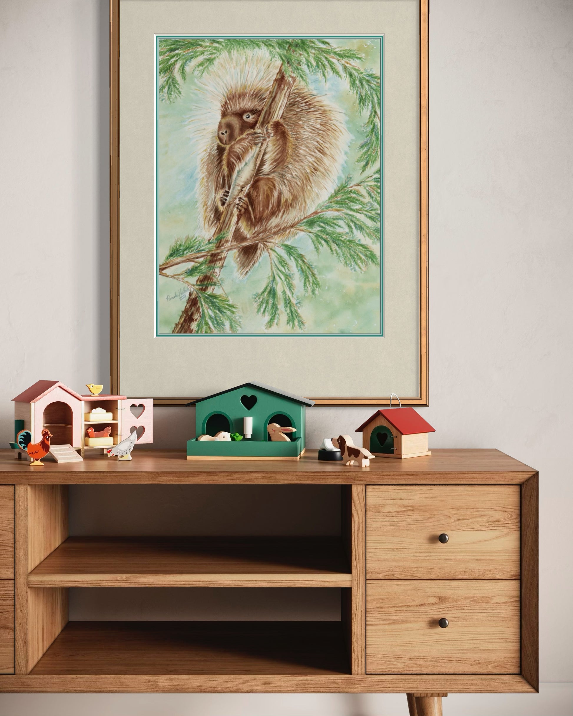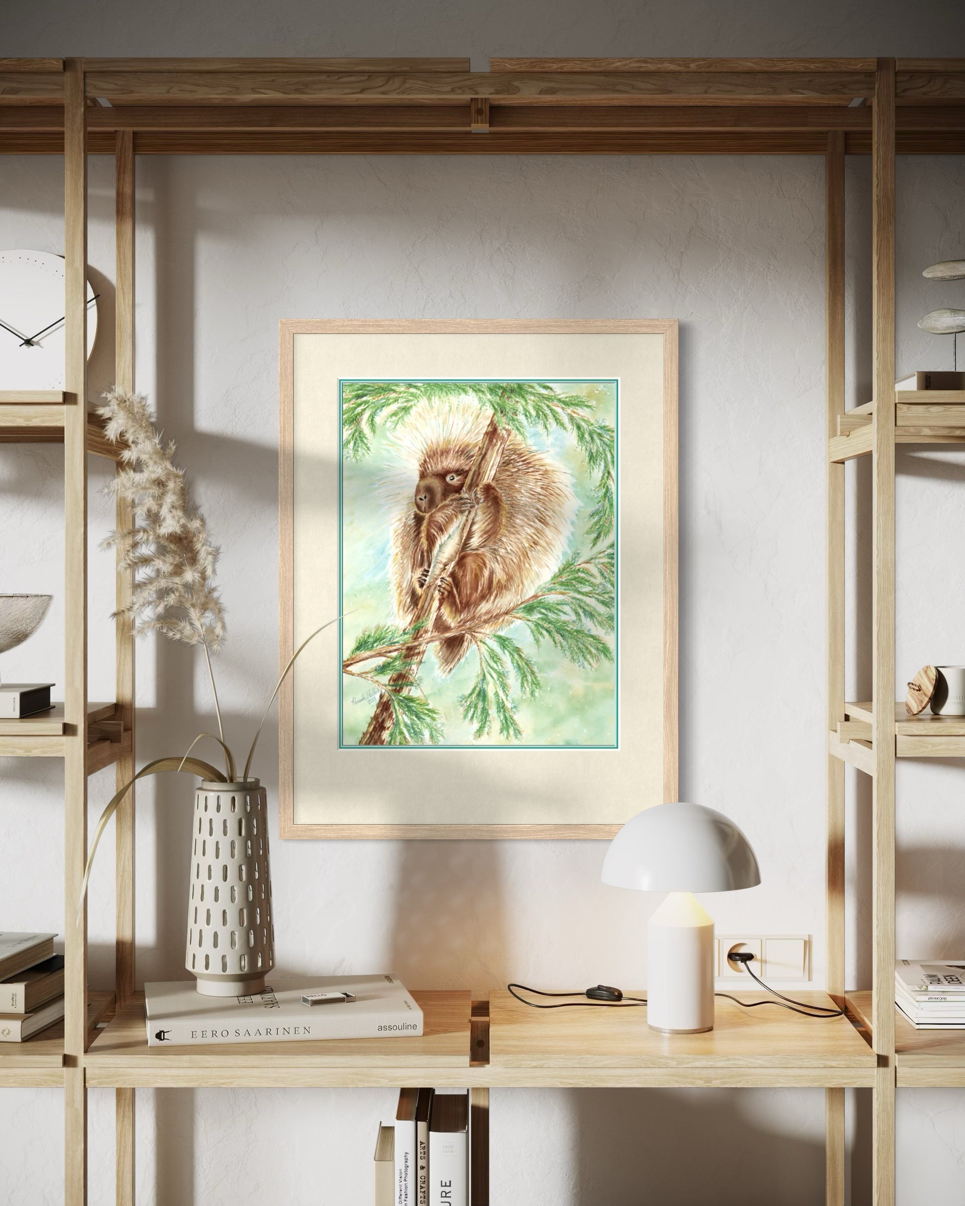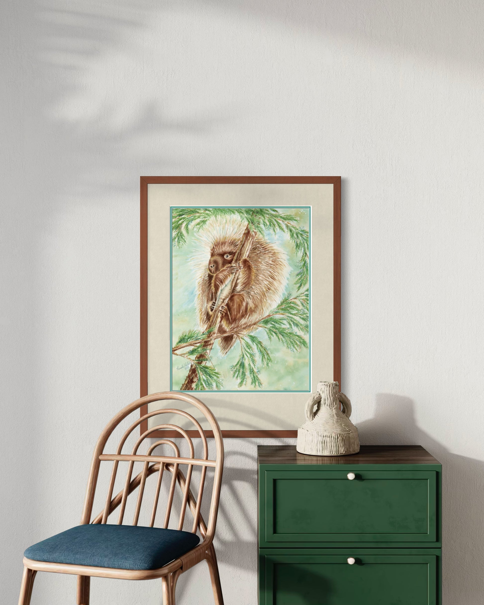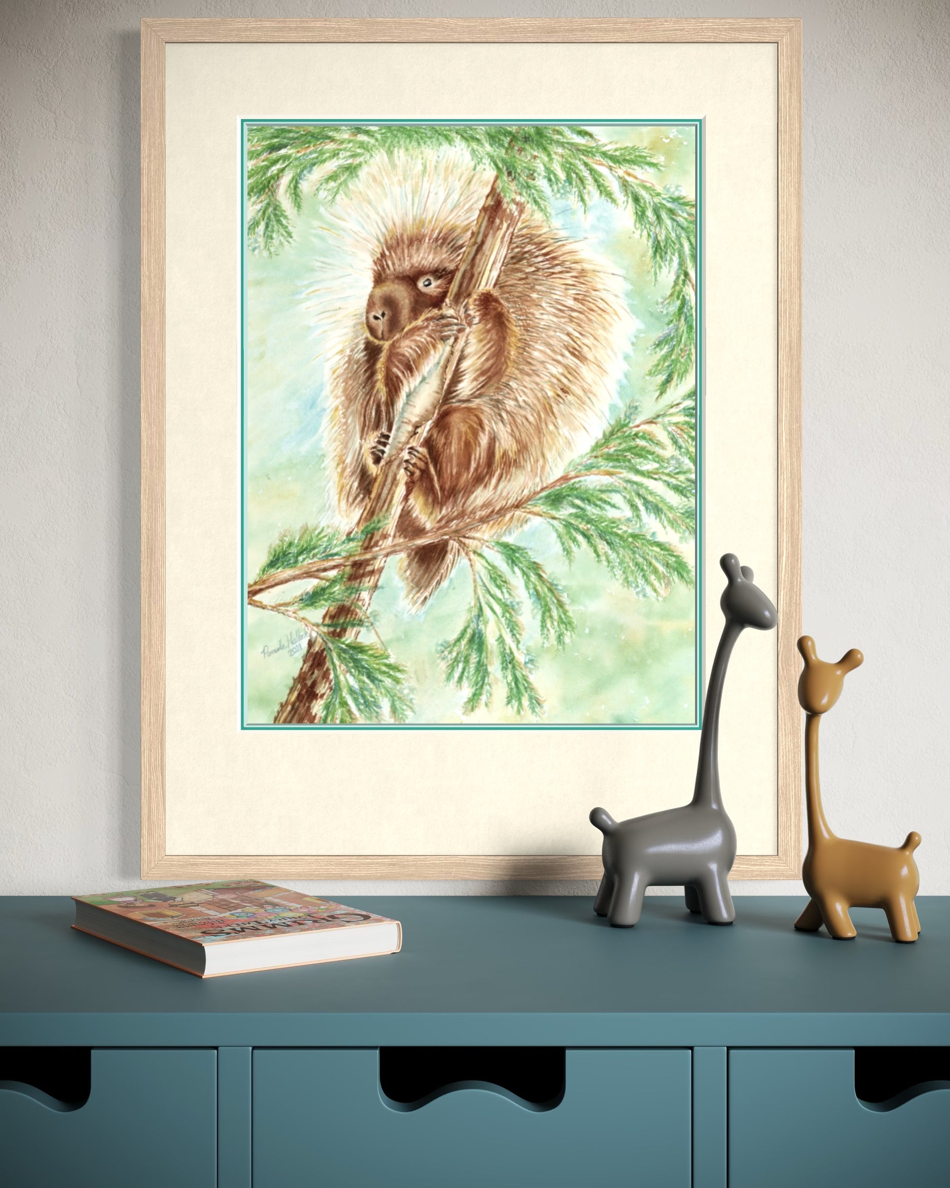 🦔 Porcupine Watercolor Print – Woodland Wildlife Fine Art