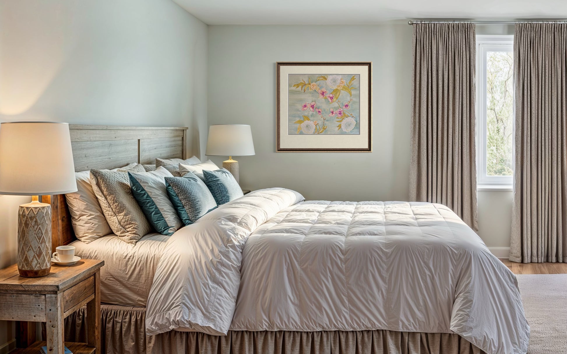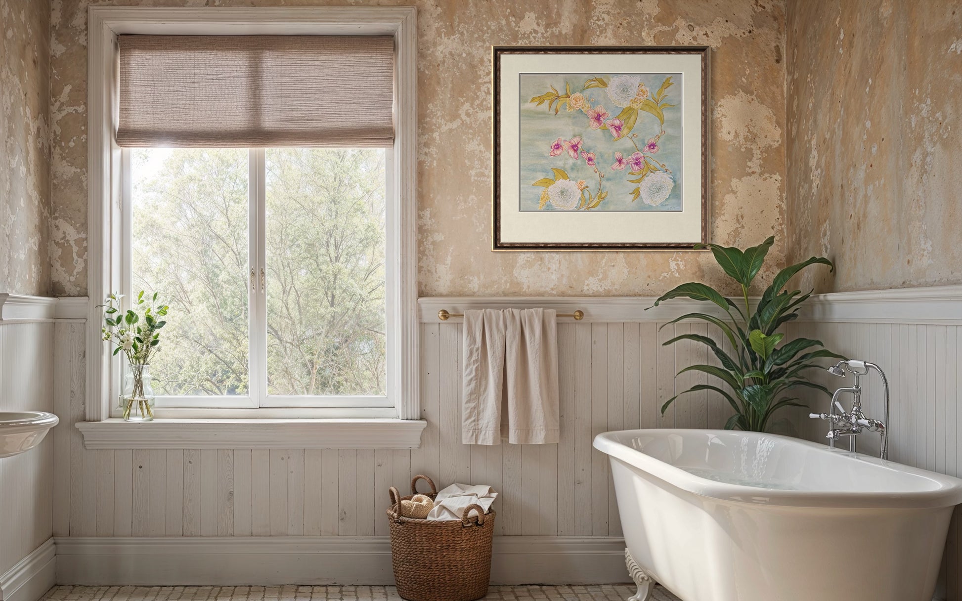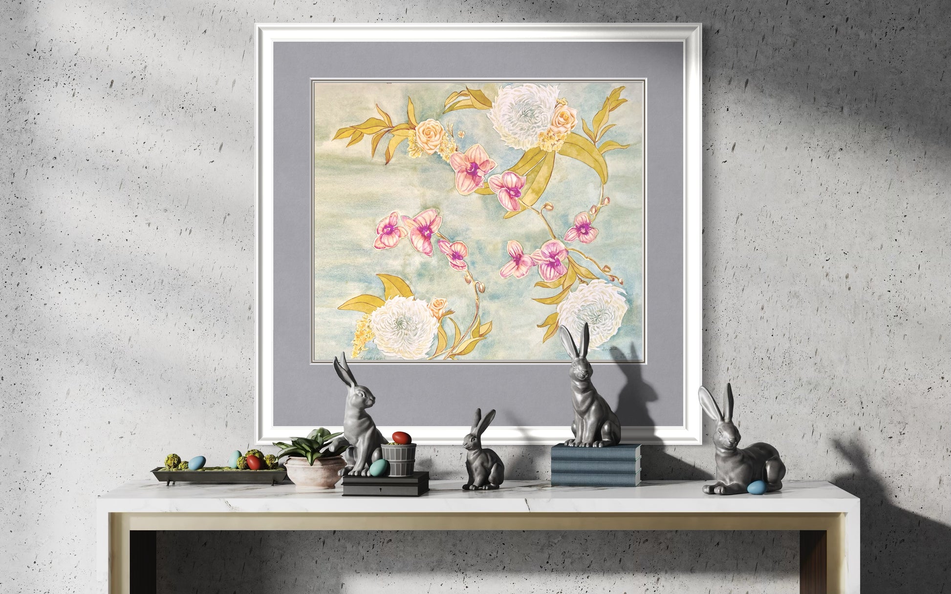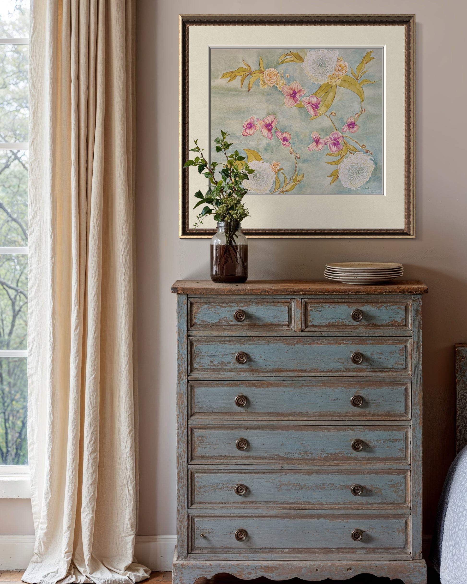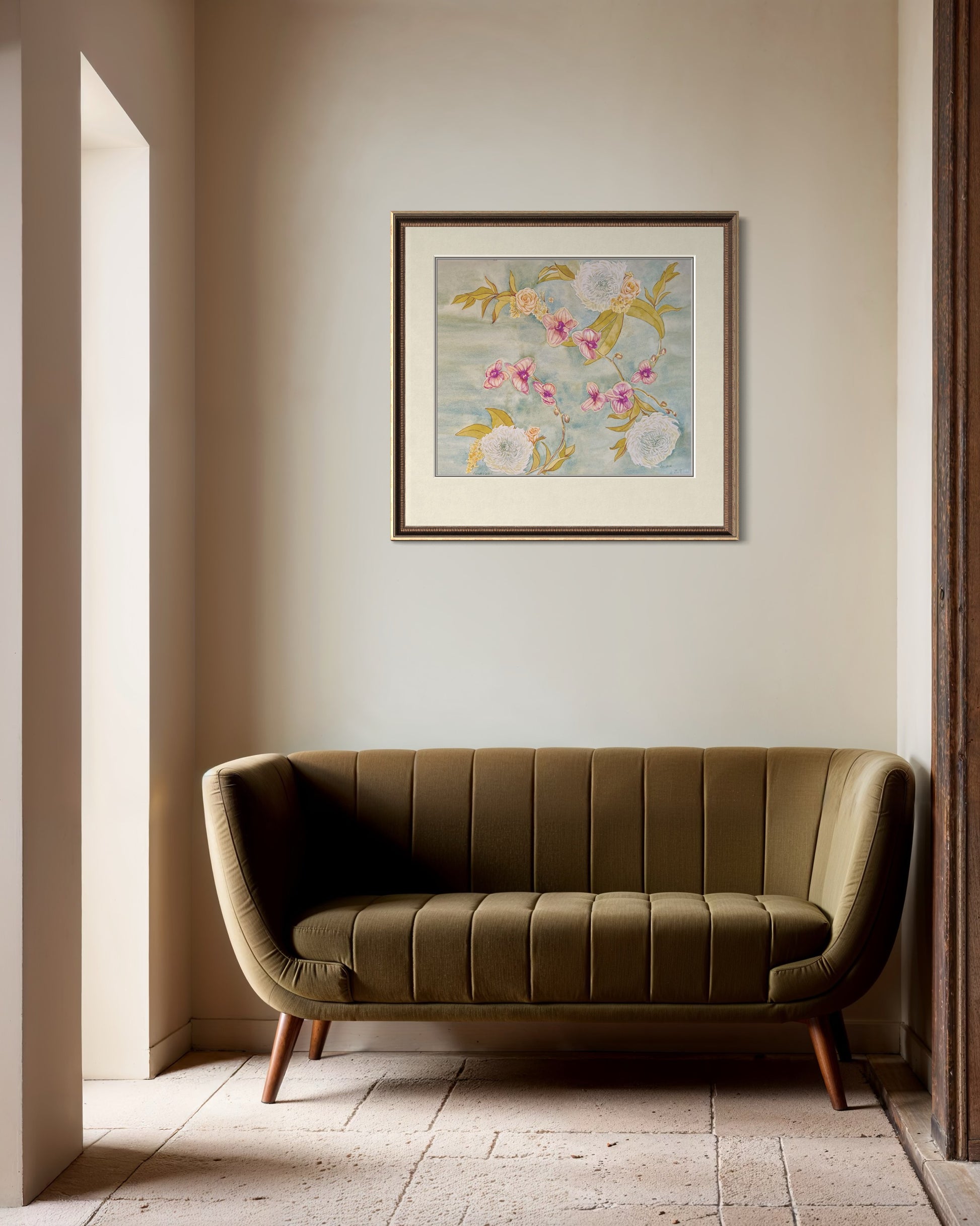 This artwork is a tribute to both the delicate beauty of flowers and the artistry of floral design, bringing warmth and sophistication into any space.