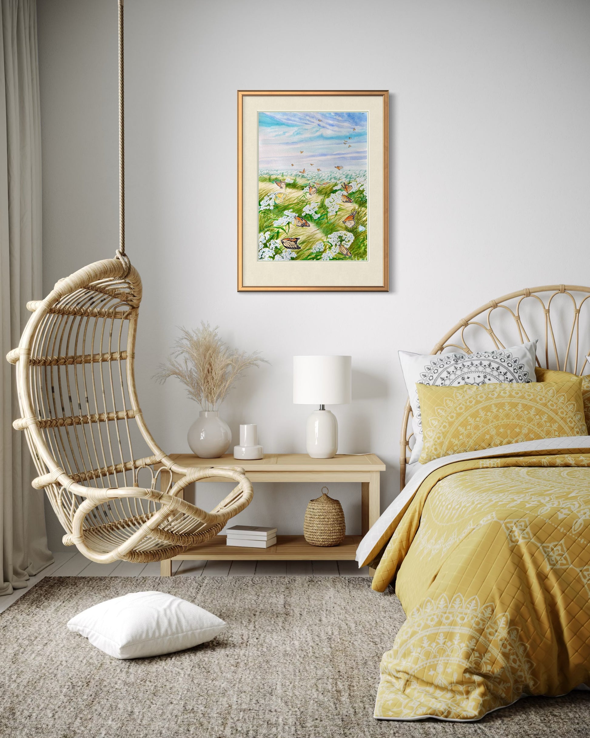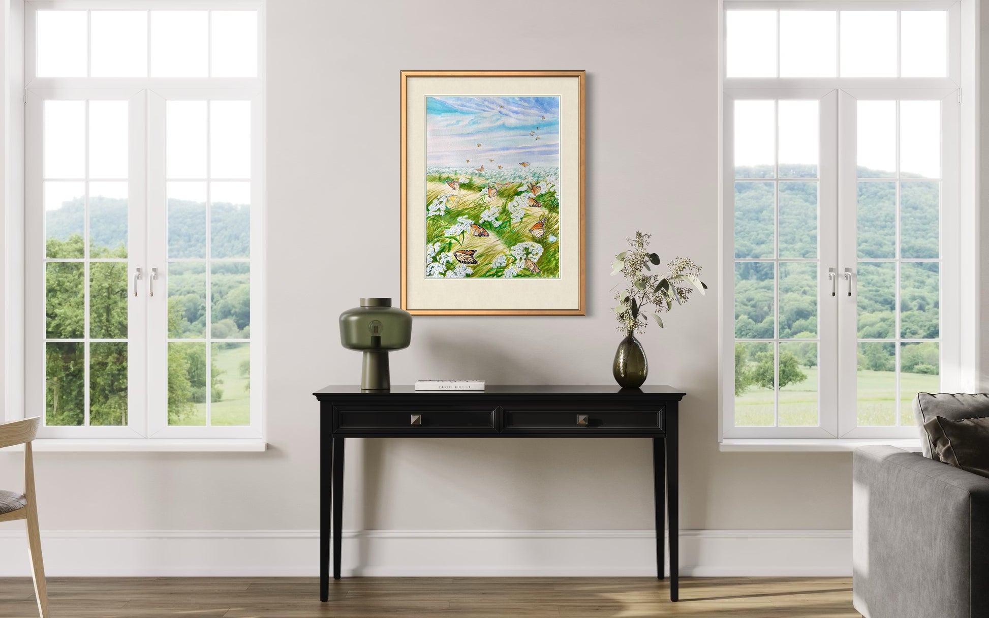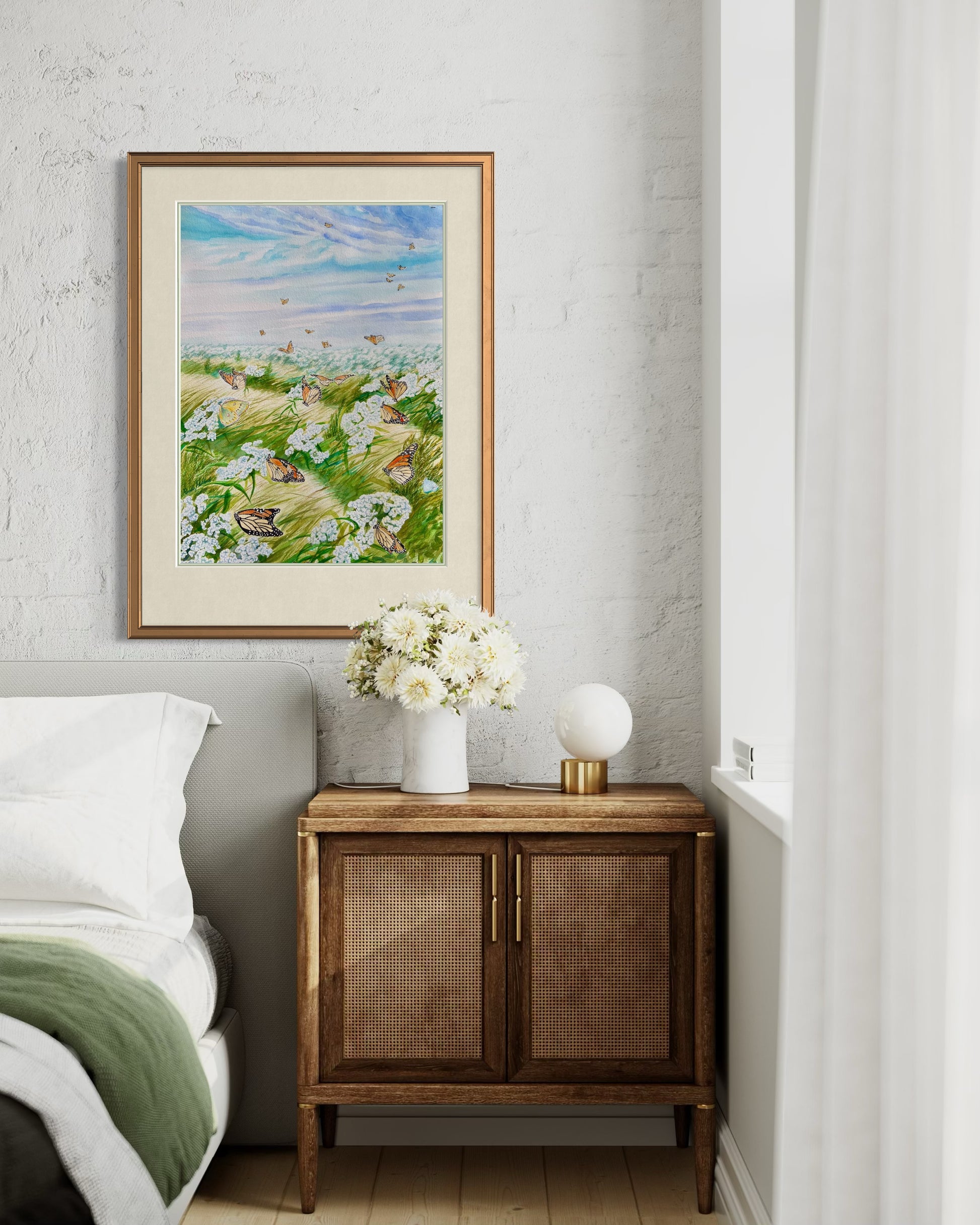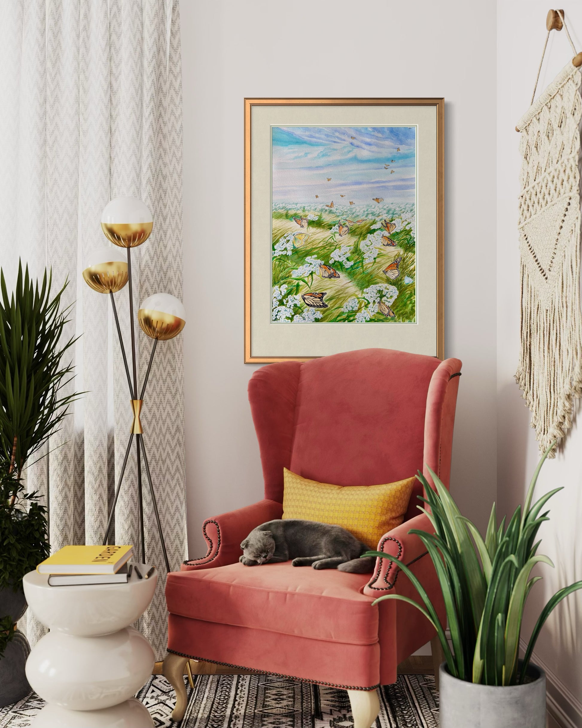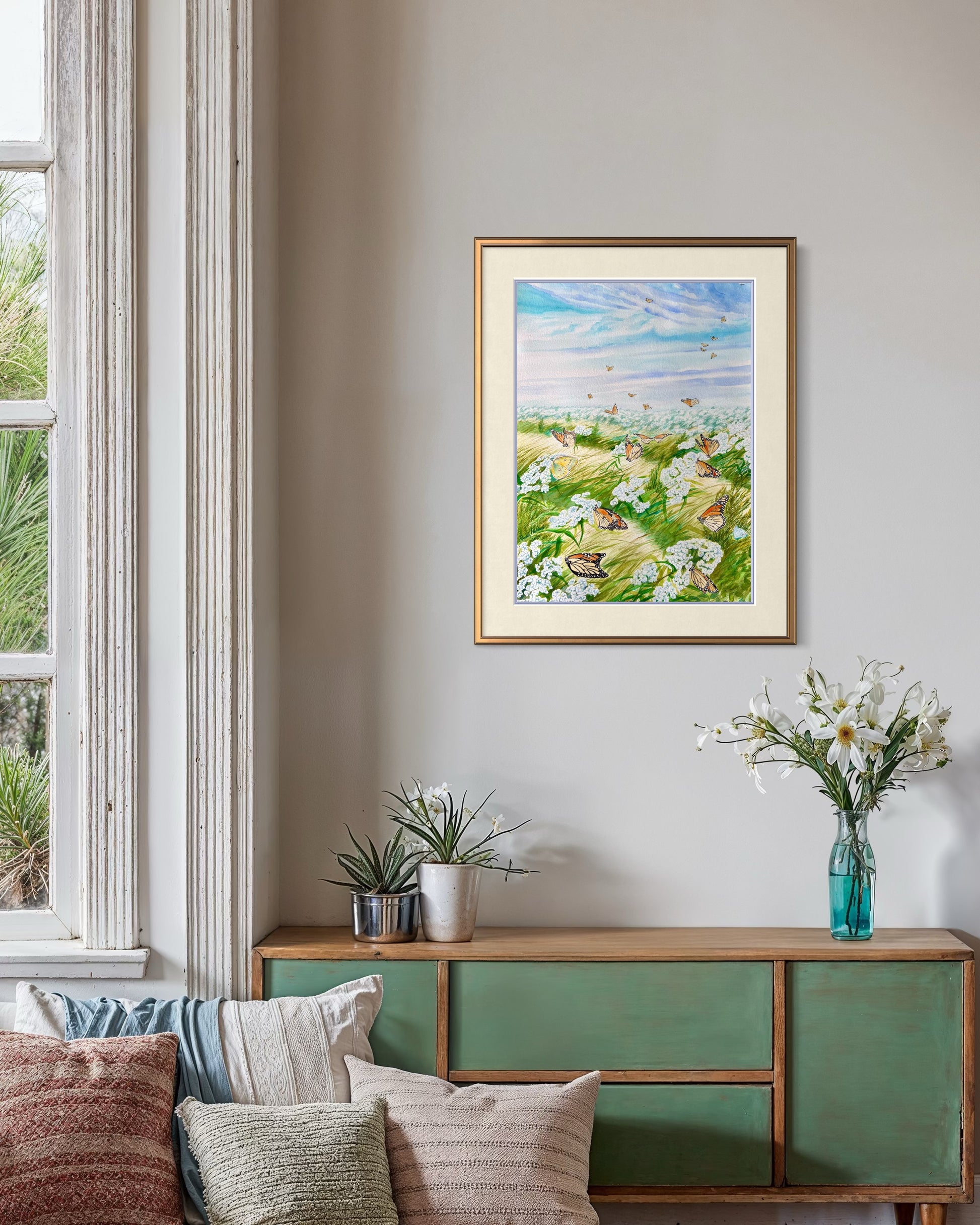 Experience the magic of The Butterfly Dance, a captivating watercolor by Pamela Hallock from the 2024 Collection. This artwork celebrates the beauty and resilience of Monarch Butterflies as they flutter gracefully across the skies of Georgian Bay. In a windswept bog, they alight on wild milkweed, laying eggs amid a confetti of wings, sunshine, and wind. The painting captures this fleeting, enchanting moment in nature’s rhythm—a celebration of transformation, migration, and life’s delicate dance. For nature and garden lovers, discover "Signs of Spring".
