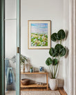 This print is available as a giclée fine art print on Somerset Velvet watercolor paper. Each giclée is a digitally reproduced print, signed, numbered, and dated in a limited edition of 250. Two sizes are available—21.5" x 29.25" or 14" x 19"—with a ½" border on the sides and top, and a 2" border on the bottom. Giclée prints are shipped flat for protection and are best displayed framed.