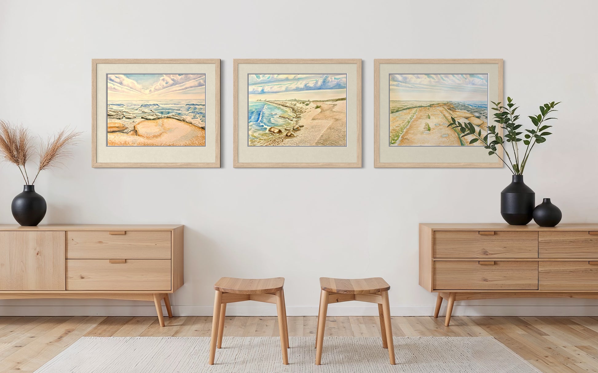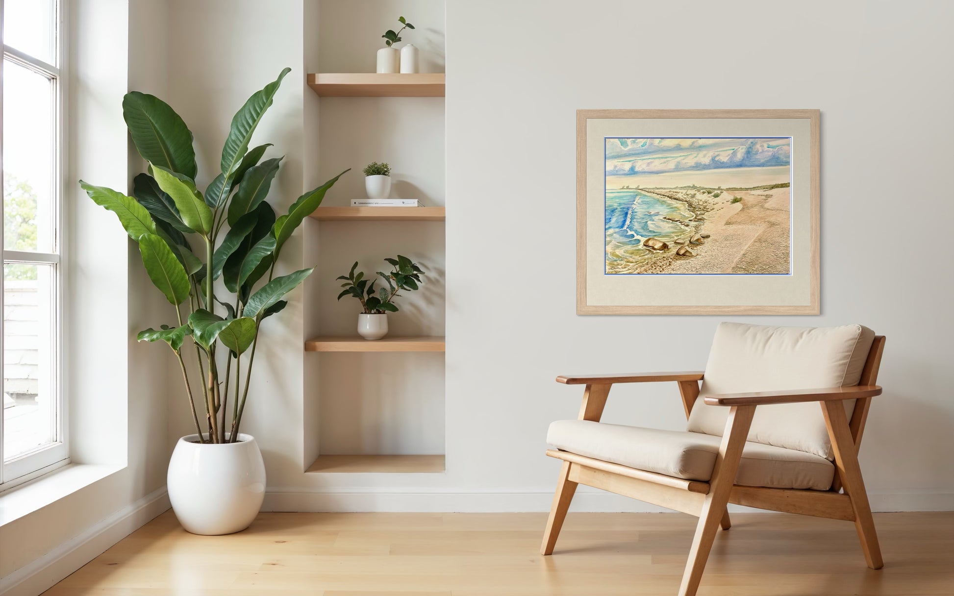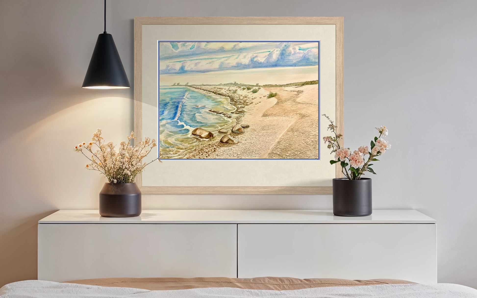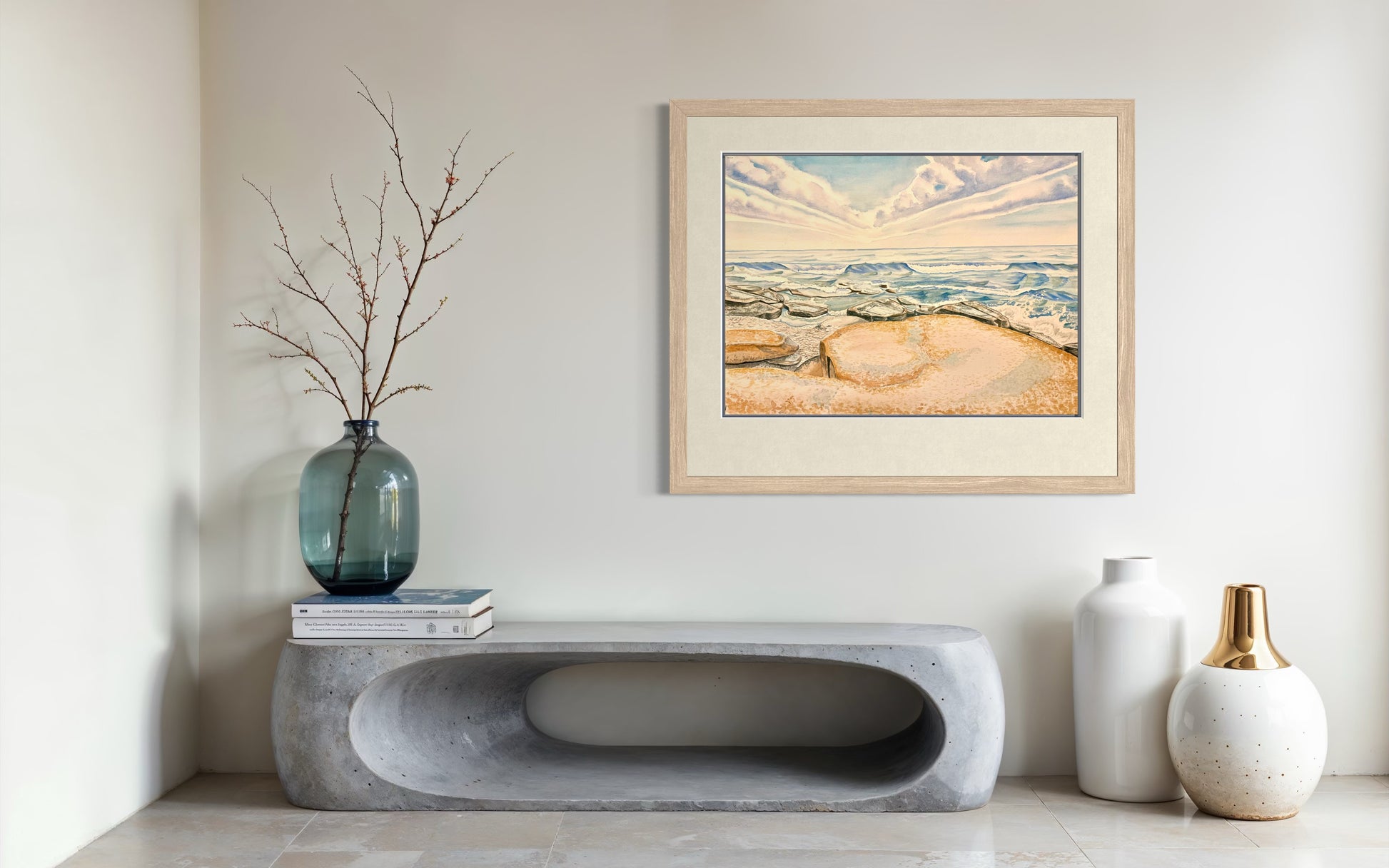 Immerse yourself in The Limestones II, the second print in Pamela Hallock’s triptych honoring Georgian Bay’s wild beauty. This piece draws you into a sweeping expanse where sunlit waters meet glacier-carved stone, and the air carries the whispers of ancient flora.