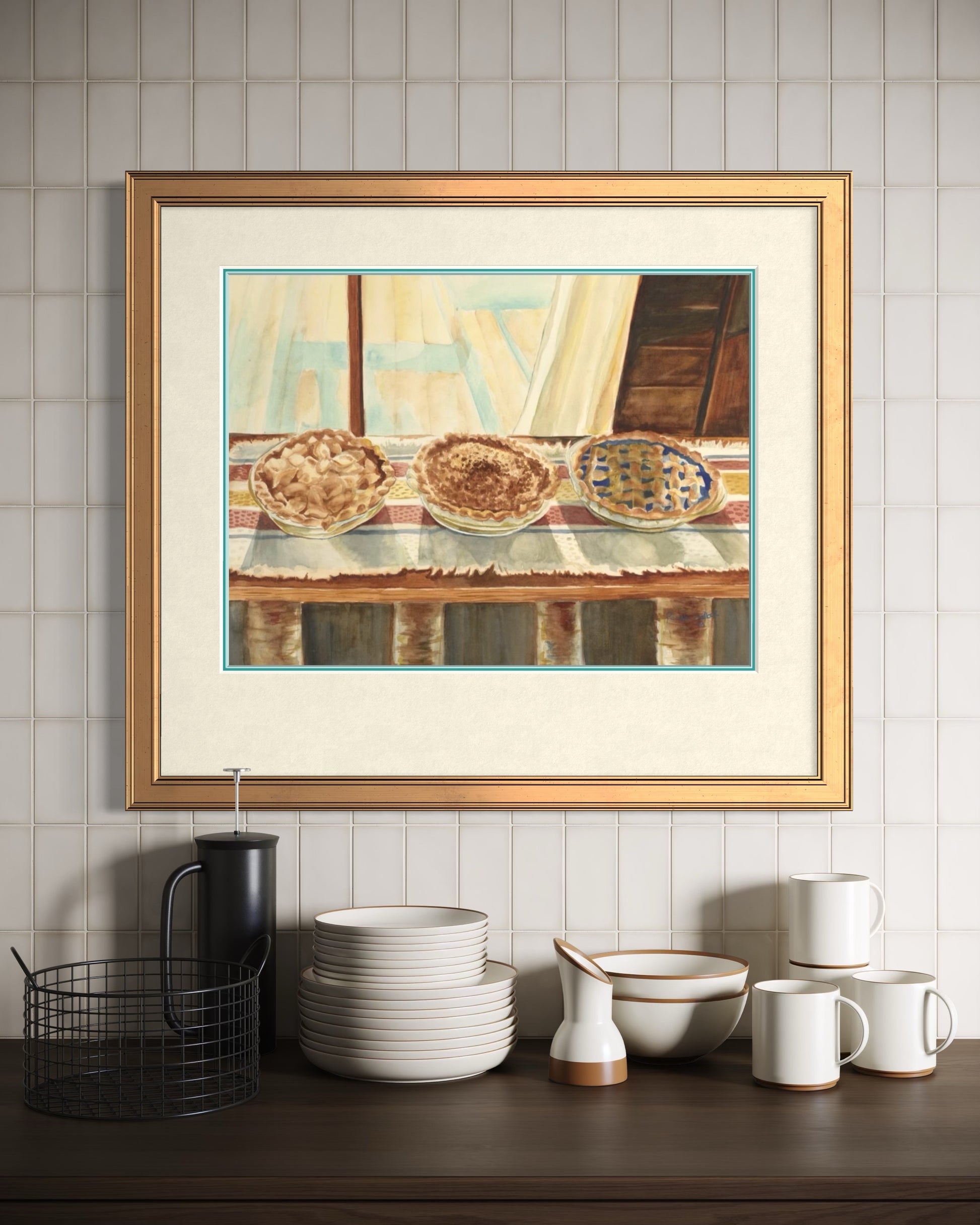 🥧 Three Pies on the Windowsill Watercolor Print – Still Life Fine Art