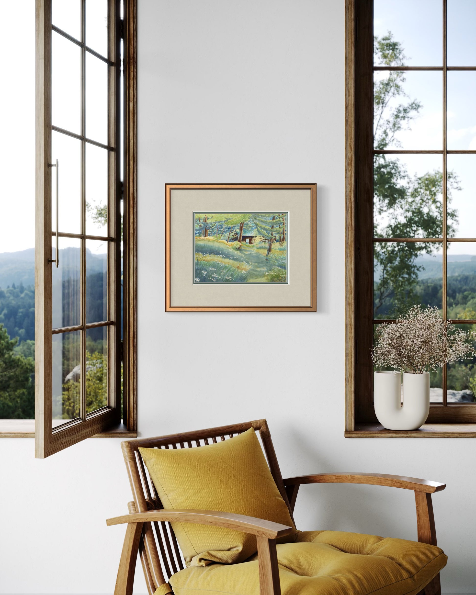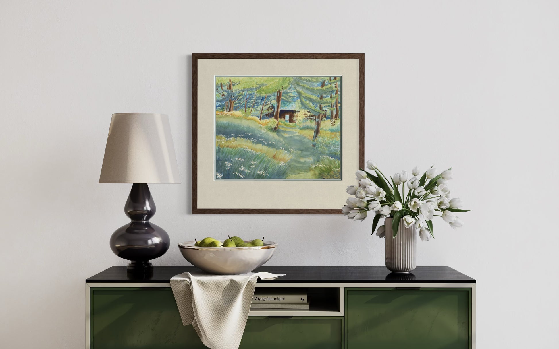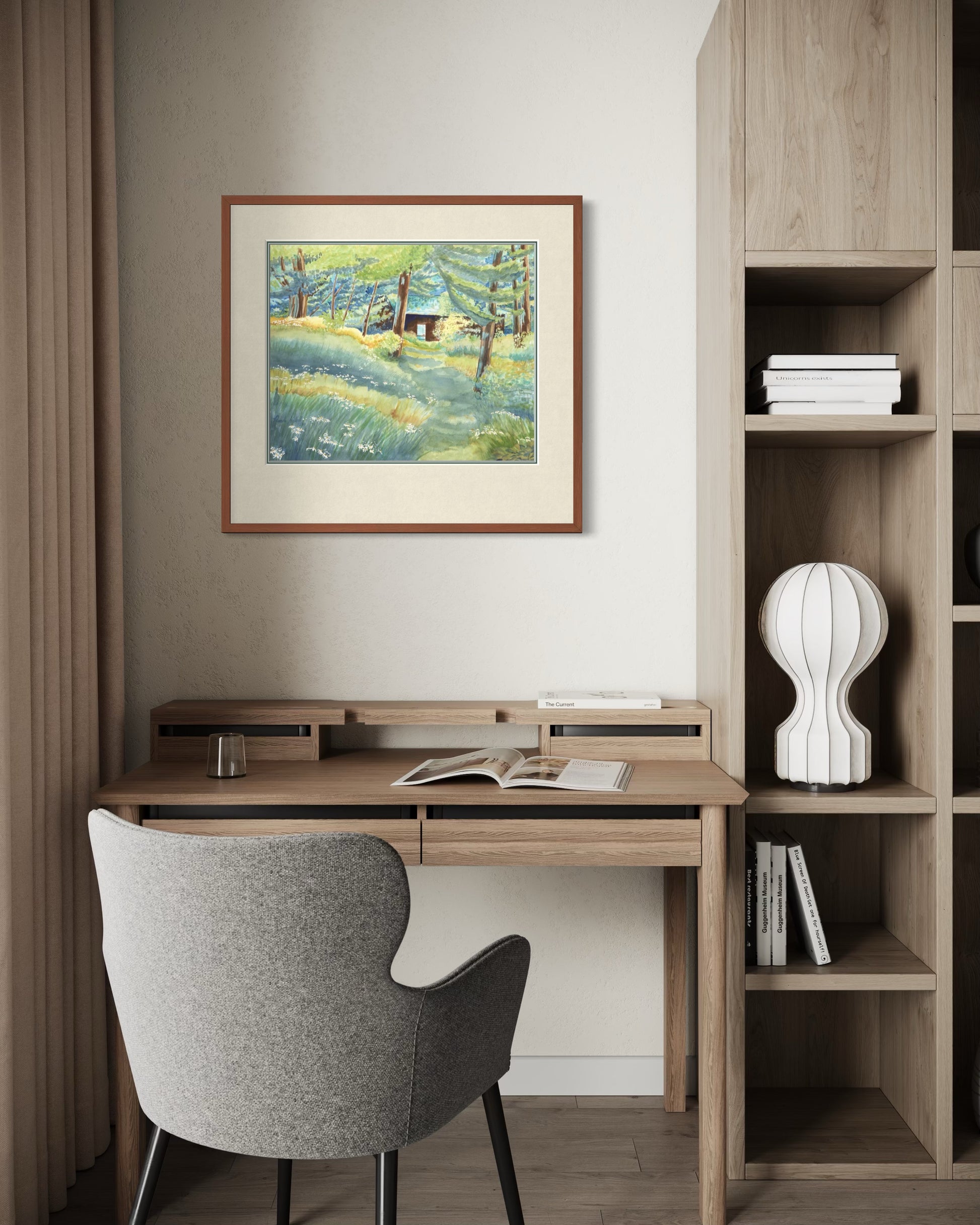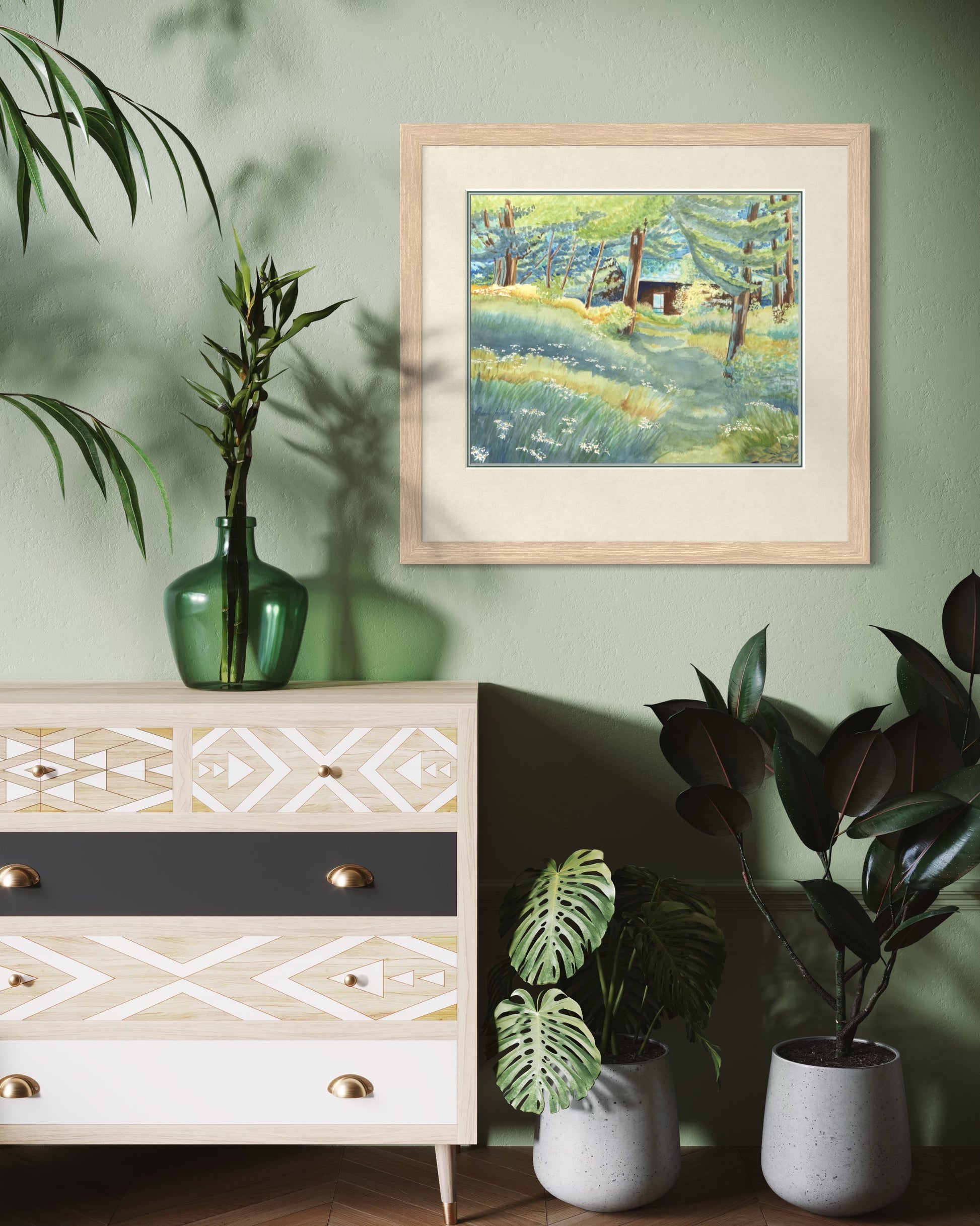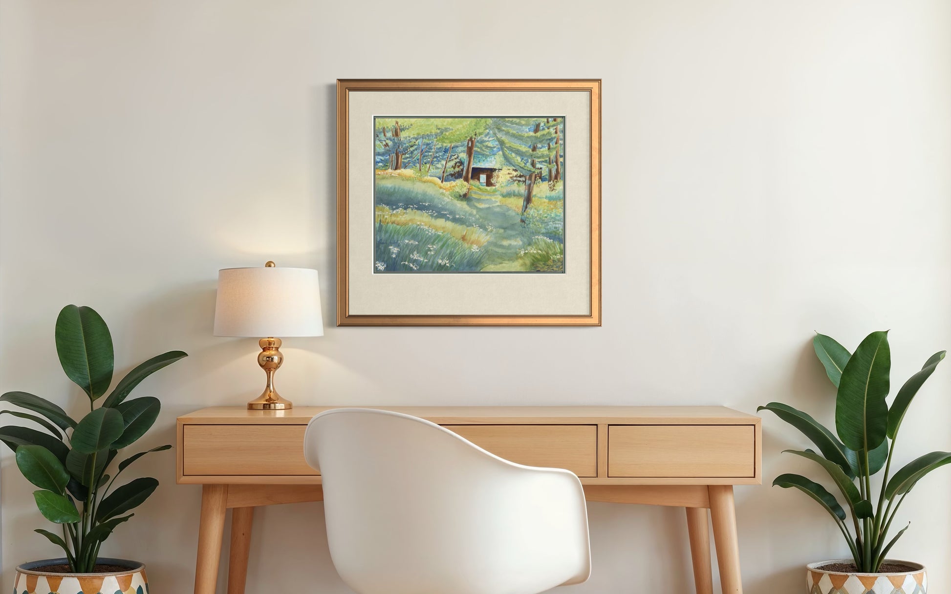 This artwork beautifully conveys the serenity of Canadian wilderness landscapes, where the fragrance of pine and the sparkle of clear waters offer a restorative escape. A celebration of the simple pleasures of life, this piece is ideal for collectors of Georgian Bay fine art, cabin watercolor prints, and nature-inspired artwork.